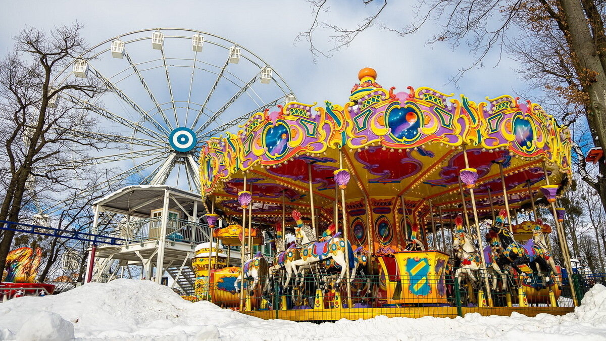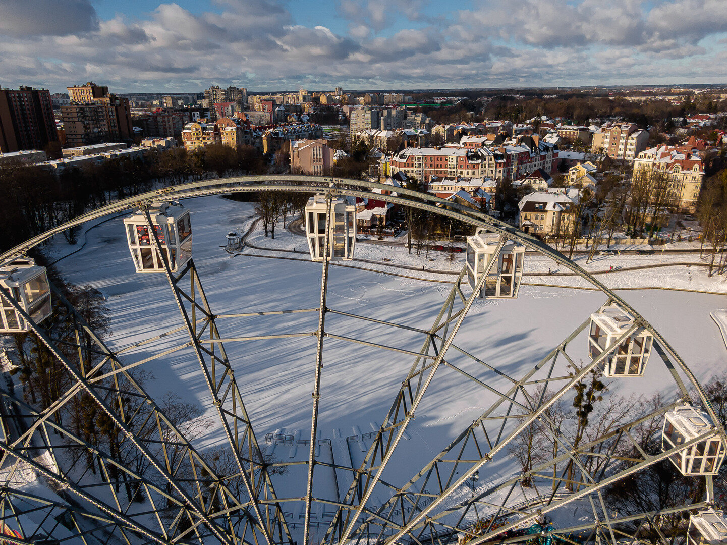 Открывайте незабываемые виды новогоднего Калининграда с колеса обозрения высотой 45 метров.