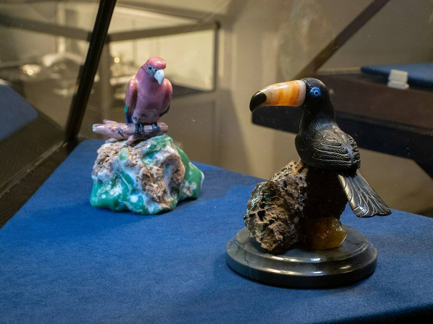 Всего из Екатеринбурга в Калининград привезли более 200 экспонатов. Это фигуры из цветных камней, интерьерные предметы, «минералогические горки», «каменный зоопарк». В частности, среди фигурок — петушок из сердолика, произведение фирмы Карла Фаберже начала XX века, объемная и флорентийская мозаика, утончённые ювелирные украшения.