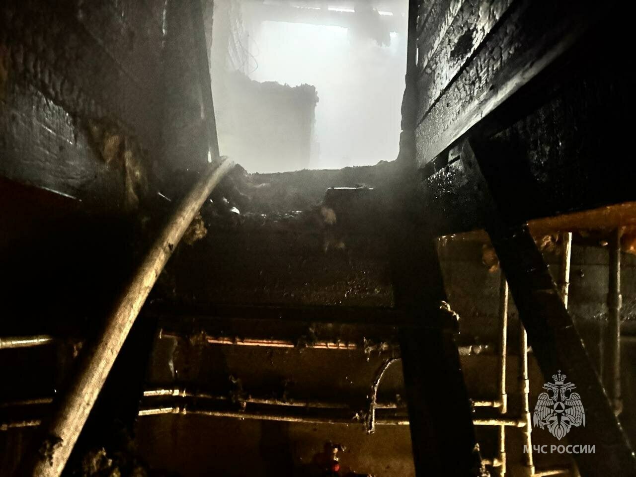 Инцидент произошёл в пятницу, 9 января. В здании горела обрешетка кровли, деревянное межэтажное перекрытие и две комнаты отдыха на общей площади 200 квадратных метров.