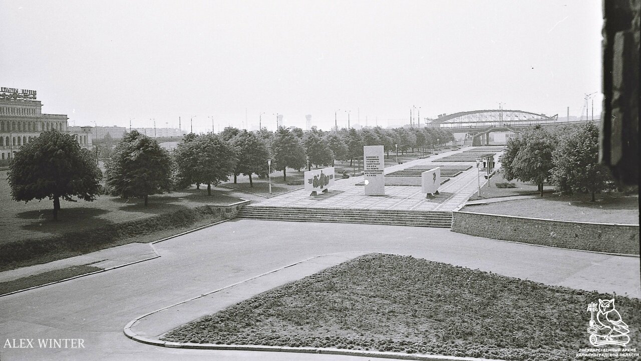 «Прямо же по курсу — Аллея Славы и памятная стела в честь боевого и трудового подвига советского народа. Парк на острове будет торжественно открыт 9 мая 1974г. В Государственный архив Калининградской области негатив передал А.В.Зимин. «Alex Winter», — именно так любил он подписывать свои снимки, обозначая авторство», — говорится в сообщении.