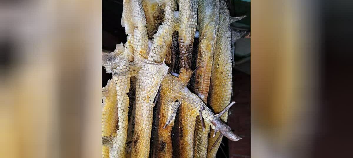 Он предполагает, что рой сел на куст ещё летом. Видимо, пчёлы не нашли другого жилья, вот и построили соты прямо на месте. Это оказалось не очень хорошим вариантом, многие насекомые погибли от мороза, да и птицы успели порядком разорить их домик. Но кто-то живой внутри явно ещё оставался.