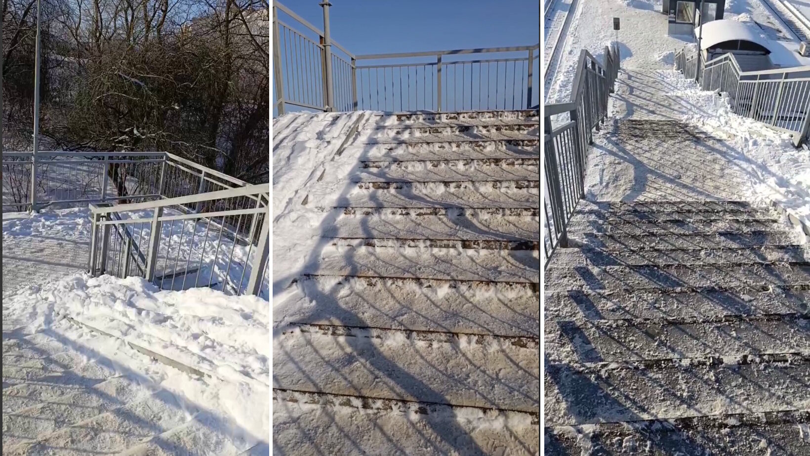 Похожая ситуация сложилась у станции Кутузово-Новое. По словам читателя Даниила, на лестницах опасно: ступени слегка посыпали реагентами, но снег и лёд остались. Калининградка Тамара рассказала «Клопс», что едва не стала жертвой плохой уборки.