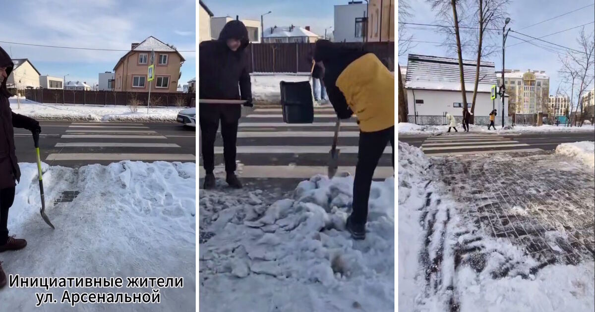 После уборки люди записали видео и «передали привет» управляющей компании и городским службам, которые должны заниматься расчисткой.