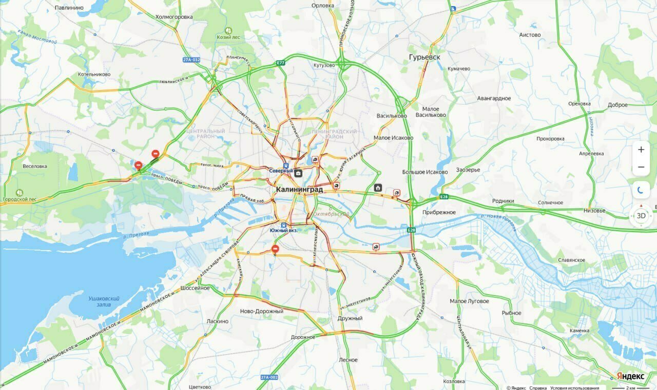 Вечером в среду, 14 января, пробки в Калининграде достигли максимальных 10 баллов. Данные сервиса «Яндекс.Карты» подтверждают, что транспортный коллапс произошёл на фоне ухудшения погоды и сообщений о нескольких ДТП.