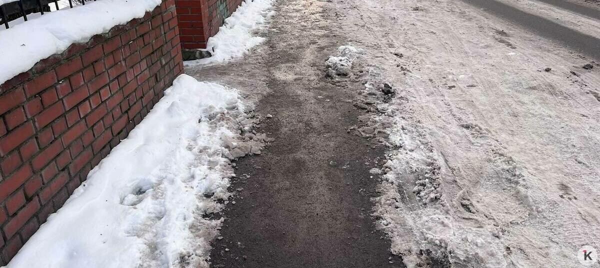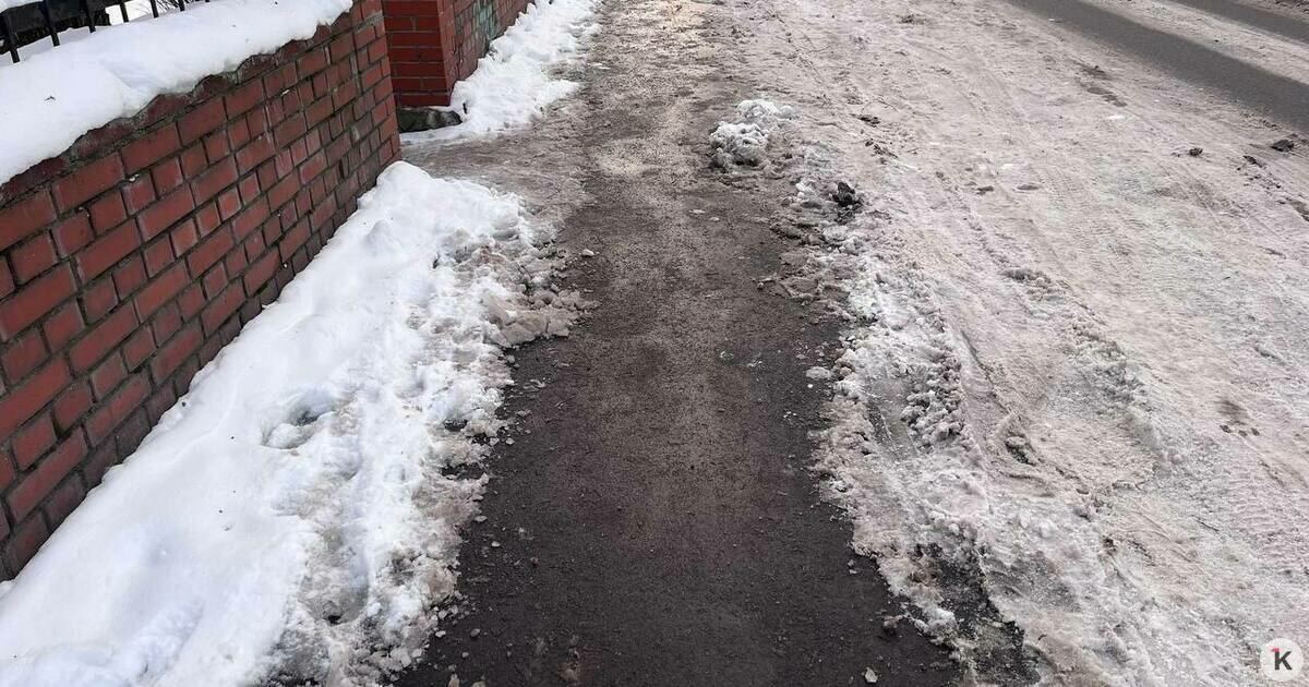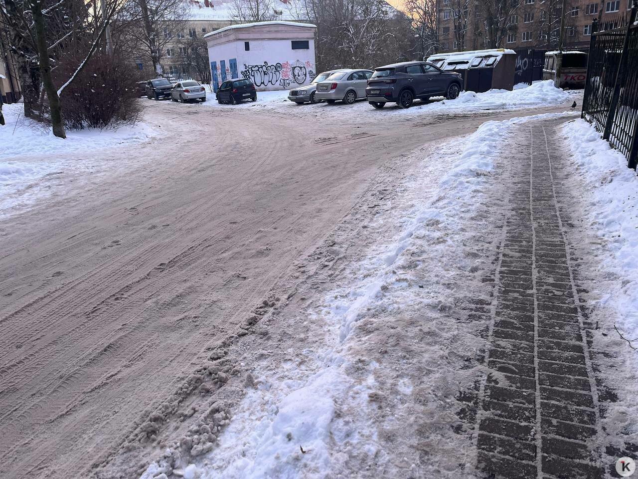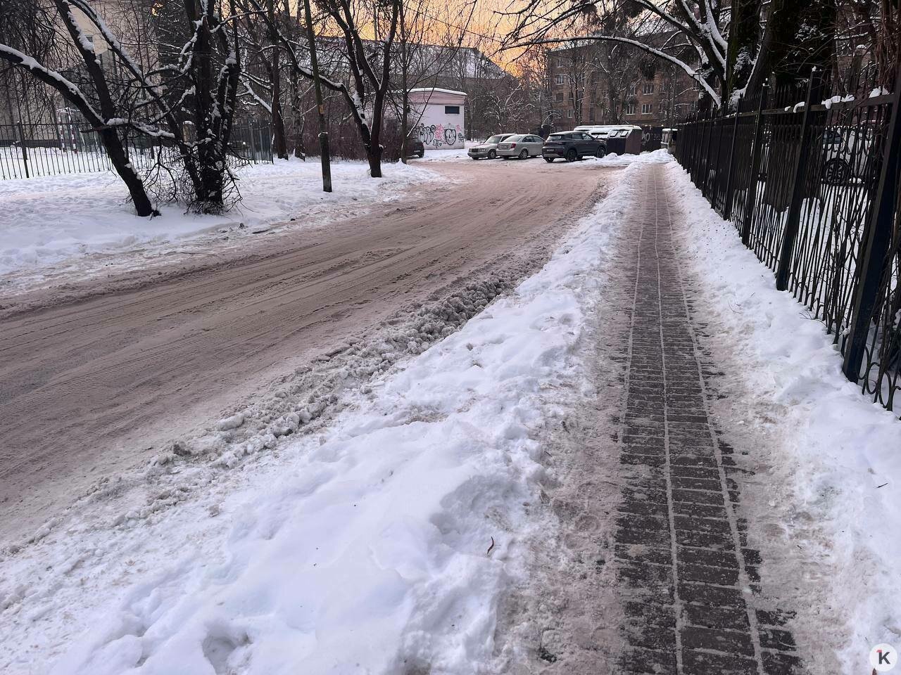 В Калининграде на третий день после снегопадов некоторые тротуары очистили лучше, чем проезжую часть по соседству. Об этом «Клопс» рассказали местные жители, а фото сделал наш корреспондент в среду, 14 января.