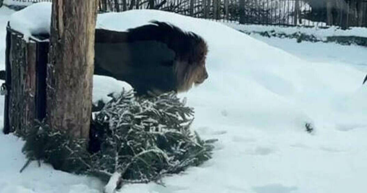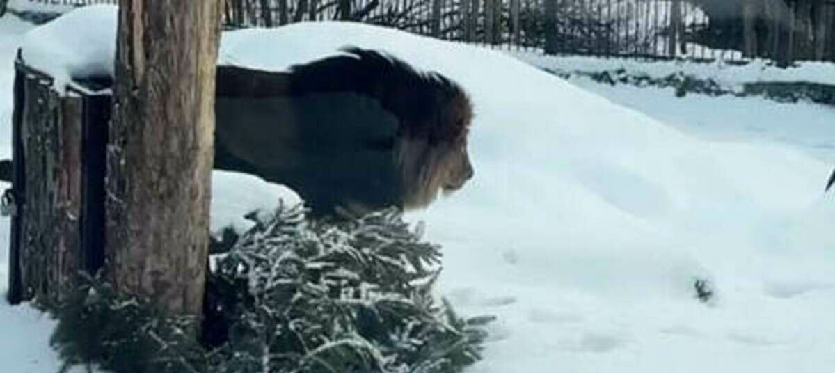 В Калининградском зоопарке показали гуляющего по снегу льва Тиграна. Видео опубликовала пресс-служба учреждения в среду, 14 января.