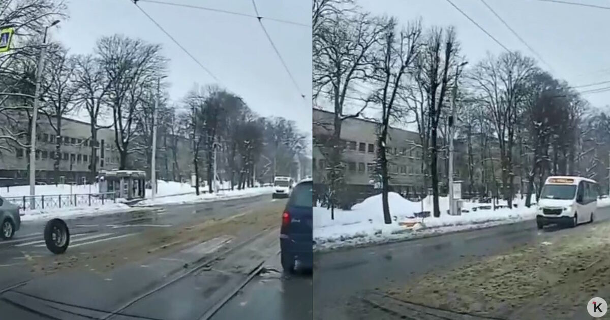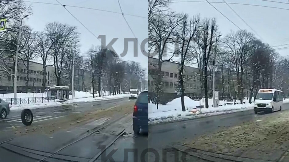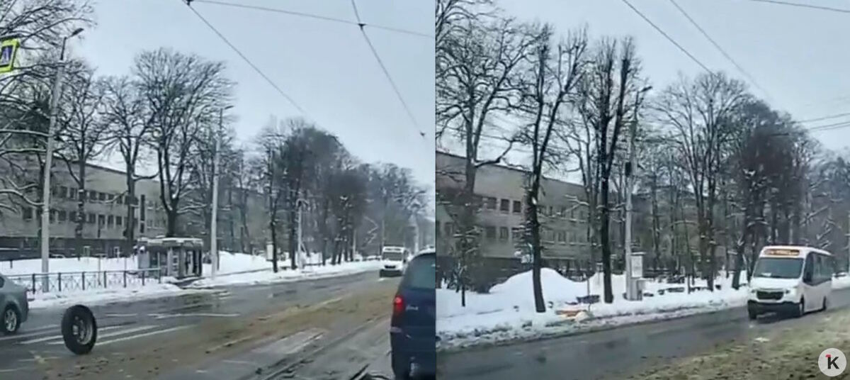 В Калининграде на проспекте Мира у маршрутки на ходу отлетело колесо. Инцидент случился в четверг, 15 января, сообщили «Клопс» очевидцы происшествия.