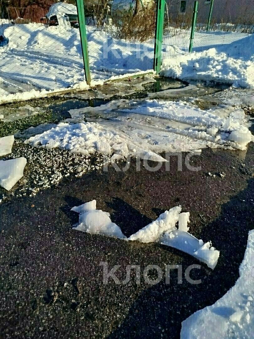 По словам женщины, перекрёсток на улице Центральной между строениями №9 и №11 оказался залит водой и сковался льдом. Это осложнило выезд для жителей нескольких домов.