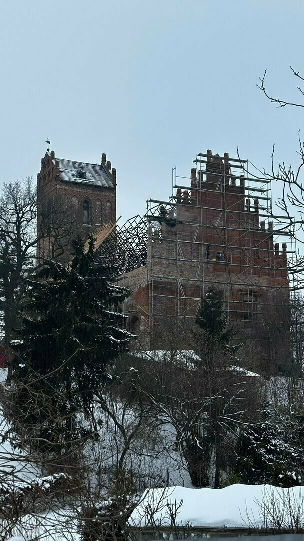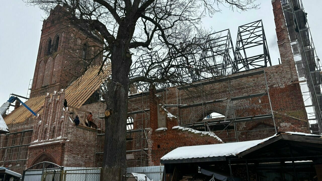 5. В кирхе Железнодорожного после завершения реставрации планируют открыть музей Романовых и концертный зал. По словам арендатора объекта Маргариты Пырко, команда рассчитывает начать работу летом. На здании продолжаются реставрационные работы: установлены последние стропильные фермы, что позволяет приступить к монтажу кровли. Полностью восстановлен фронтон, он готов к финальной отделке.