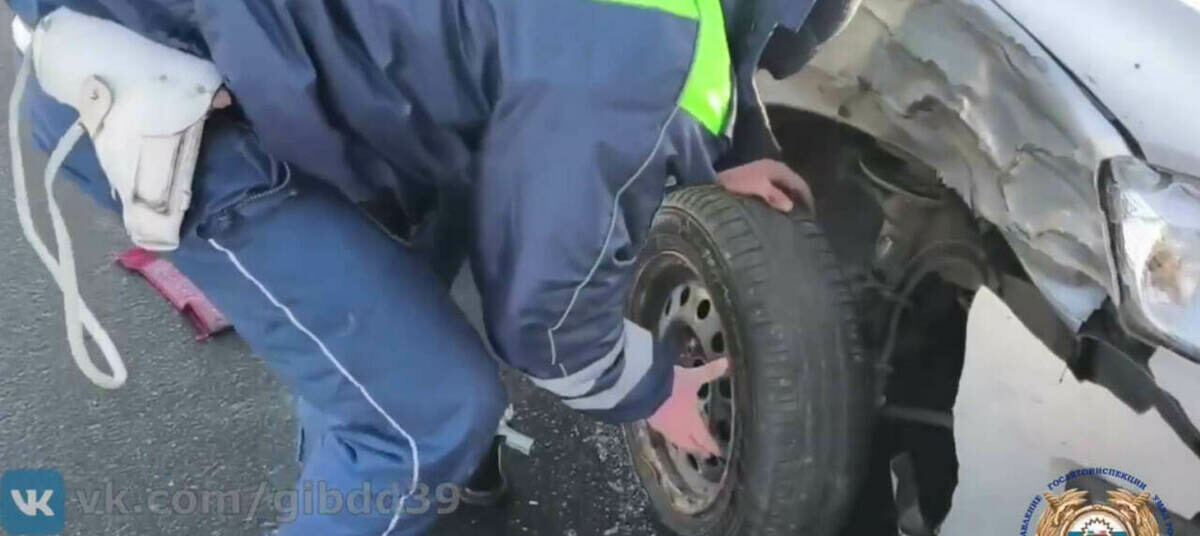 Инспектор отделения Госавтоинспекции МО МВД России «Гвардейский» заметил вставший на трассе автомобиль и остановился, чтобы помочь. Как видно на видео, у машины было повреждено колесо. Сотрудники полиции обеспечили безопасность на дороге и помогли водителю установить «запаску», после чего она смогла продолжить движение.