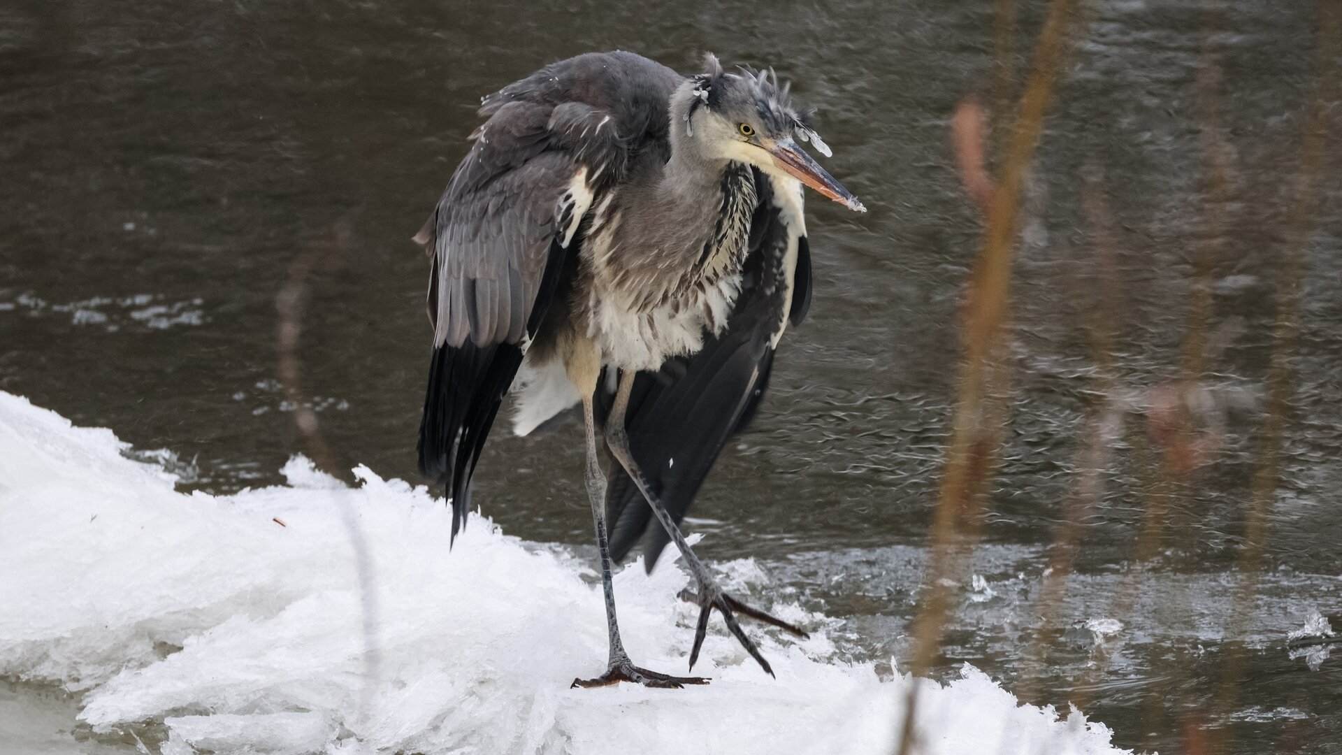 «Непростое время, — пишет Таркин у себя в блоге. — Но, судя по бравому настроению, крохалям всё нравится, игриво ныряют под воду в поисках рыбы. Вот у цапли внешний вид изнемождённый, часами терпеливо пасёт малька, сегодня ей тяжелее всего».