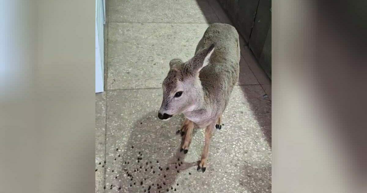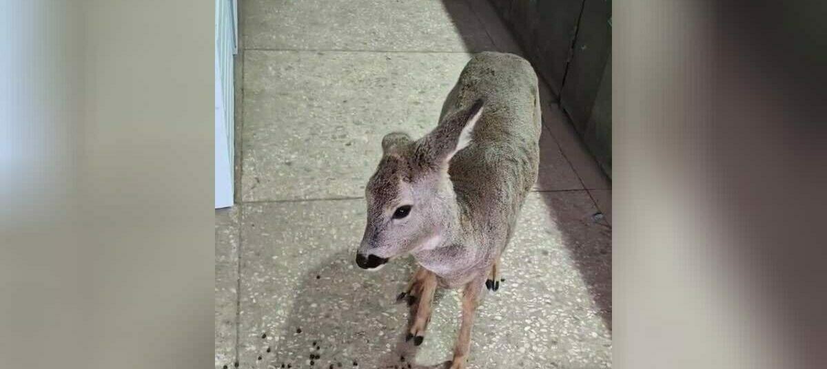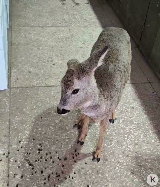 Косулю калининградец на выходных нашёл в поле за городом. Сначала он принял её за детёныша и не стал трогать, решив, что где-то рядом ходит мать. Но через несколько часов на обратном пути застал оленя на прежнем месте — тот не двигался и, похоже, уже замерзал. Мужчина решил забрать бедолагу с собой и устроил до утра в подсобном помещении.