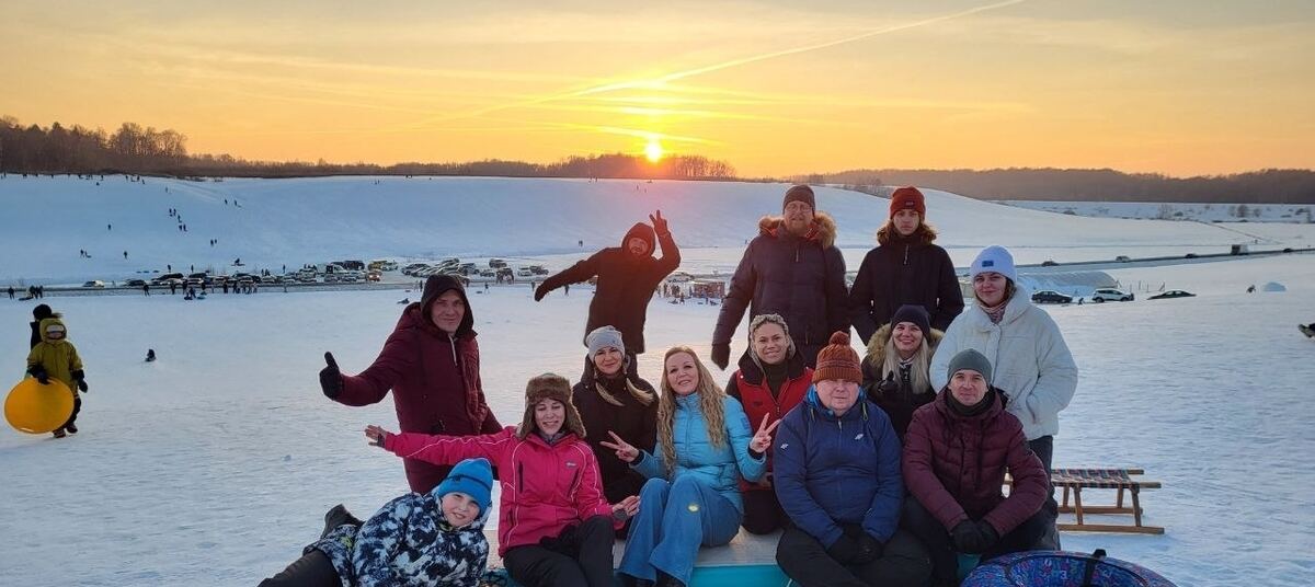 Спуск на надувных байдарках чем-то напоминает «ватрушечные» покатушки, но, по наблюдениям калининградца, гораздо проще. Лодка удобнее тем, что на ней легче маневрировать по обледеневшим склонам.