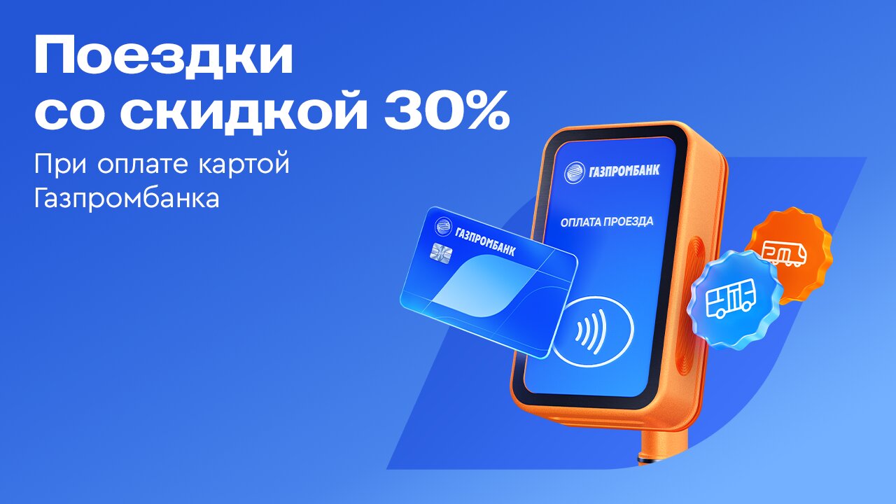 * Банк ГПБ (АО). Акция «Скидка на транспорте»: 17.11.2025–22.03.2026. Участники: физлица (18+), держатели карты банка. Скидка 30% от полной стоимости проезда перевозчика предоставляется в момент оплаты картой Газпромбанка в общественном наземном транспорте, указанном в Приложении №1 условий Акции перевозчиков в Сургуте, Воронеже, Нижнем Тагиле, Саратове и Калининградской области. Макс. размер скидки — 500 ₽ в календ. месяц, 2000 ₽ за акцию. Банк не несёт ответственности за технические сбои в ТСП. Подробнее на www.gazprombank.ru/special/a/offer-transport/. Информация предоставлена по состоянию на 17.11.2025. Генеральная лицензия Банка России №354. Реклама.