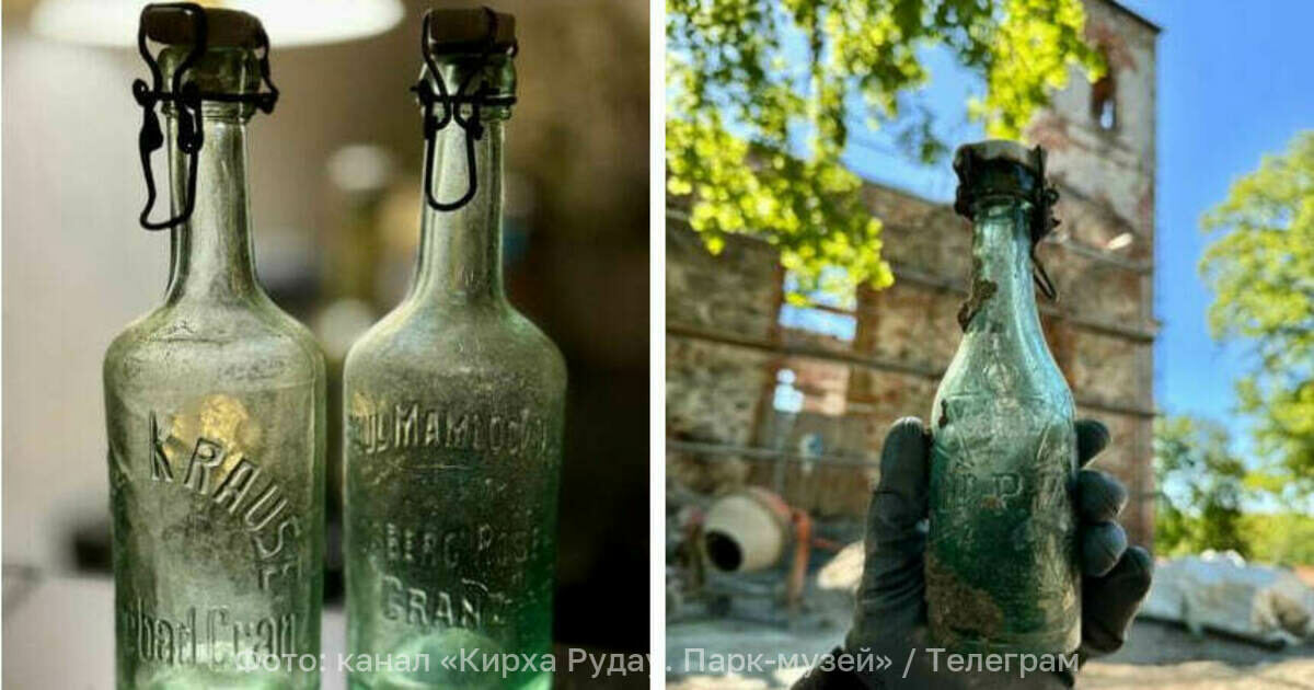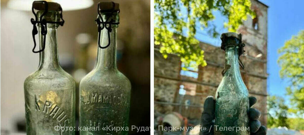 В посёлке Мельниково под Зеленоградском во время работ в кирхе Рудау нашли бутылку минеральной воды конца XIX — начала XX века. Об этом написали в телеграм-канале исторического пространства в четверг, 29 января.