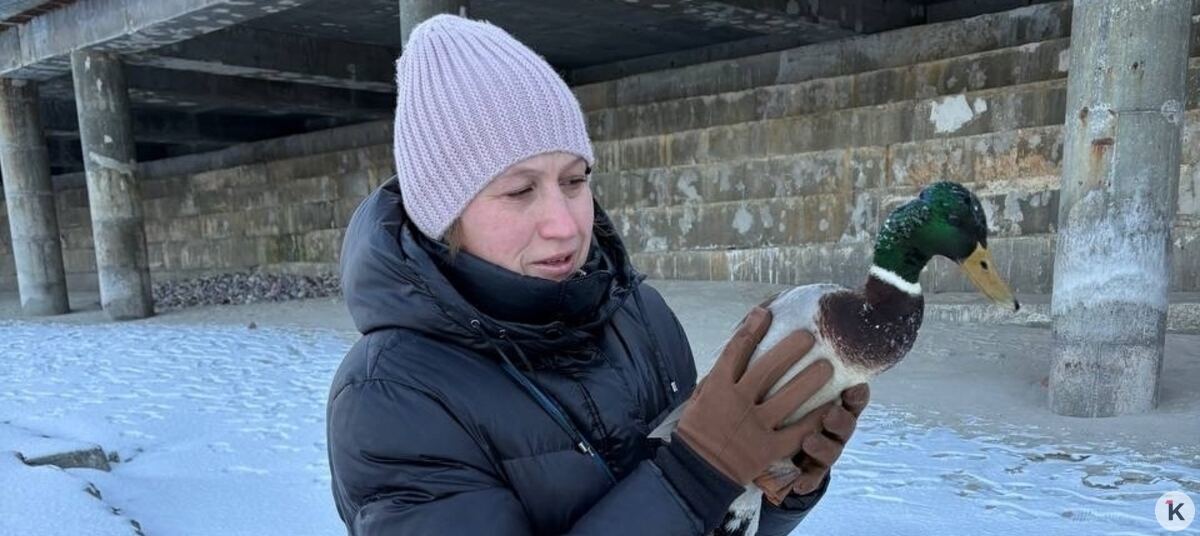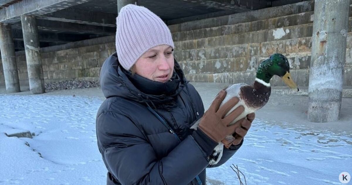 Туристка из Москвы увидела в Светлогорске замёрзшего селезня и не смогла пройти мимо. Мария Кононова рассказала «Клопс», что бедняга сам бросился к ней за помощью.