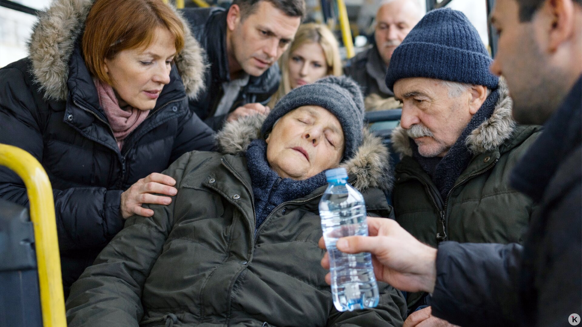 Пострадавшая немного пришла в себя, но всё равно ощущала сильную слабость. Она рассказала, что собиралась в поликлинику сдавать анализы, поэтому не позавтракала, ничего не ела и не пила. Большинство попутчиков из-за заминки в движении автобуса покинули его, так как спешили по своим делам. Но несколько мужчин и молодая доктор оставались рядом с горожанкой до прибытия скорой.