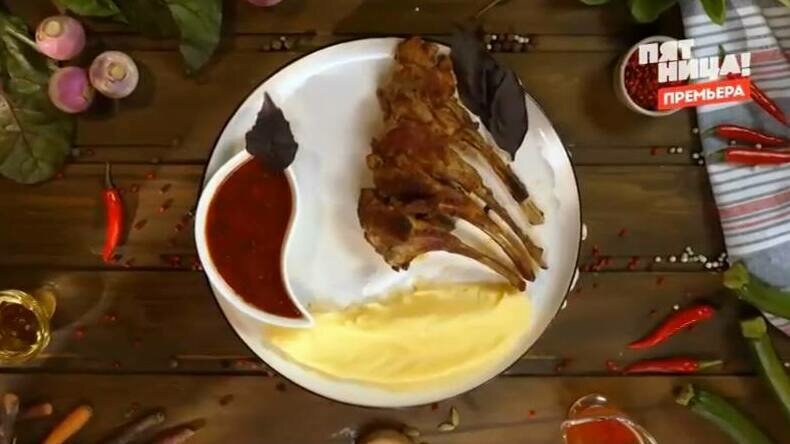 Потребуется каре баранины из спинной части. Мясо тщательно зачищают между рёбер: снимают плёнку, жировую ткань и все лишние элементы, а затем нарезают порционно — по одному ребру.