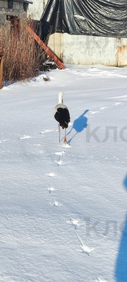Измученные долгими морозами птицы продолжают жаться к людям в поисках еды и тепла. В посёлке Саранское Полесского района к фермеру вышел ослабленный, голодный аист. Об этом Фёдор рассказал «Клопс».