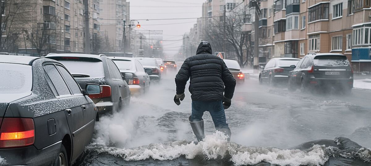 Утром 2 февраля в Калининграде произошла утечка. Горячая вода вытекала на проезжую часть в районе улицы Багратиона.