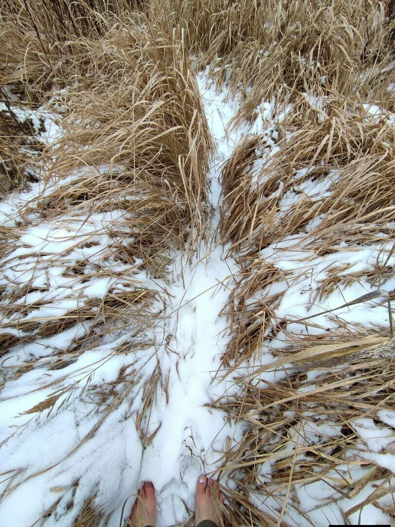 По словам мужчины, бродить по свежевыпавшему снегу даже приятно. Для него это далеко не первая босоногая зима — за более чем тридцатилетнюю практику бывали морозы и покрепче.