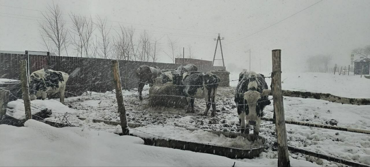 «Вчера ночью было -27, и ничего не меняется. Они без воды, грызут лёд. Сено только он им кидает, потом они сами по земле растаскивают, — рассказывает женщина. — Кто-то вчера на днях проезжал, говорит, что там корову рвало, а до этого другая прямо на поле этом дохла».