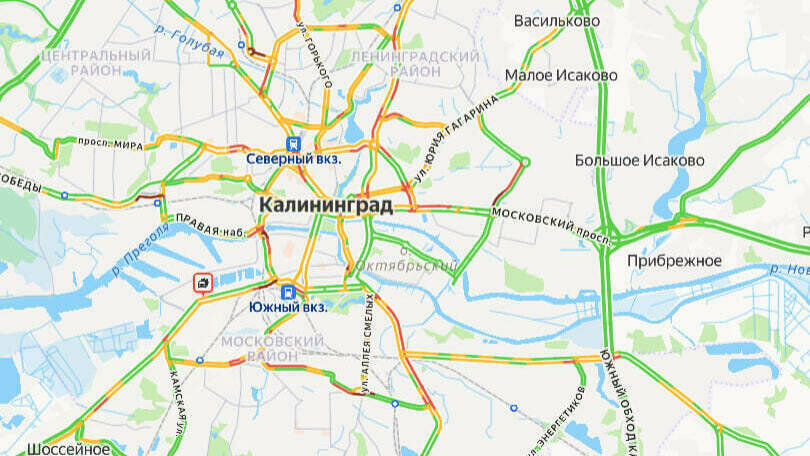 Калининград утром в среду, 4 февраля, встал в пробках. Об этом говорят данные сервиса «Яндекс. Карты».