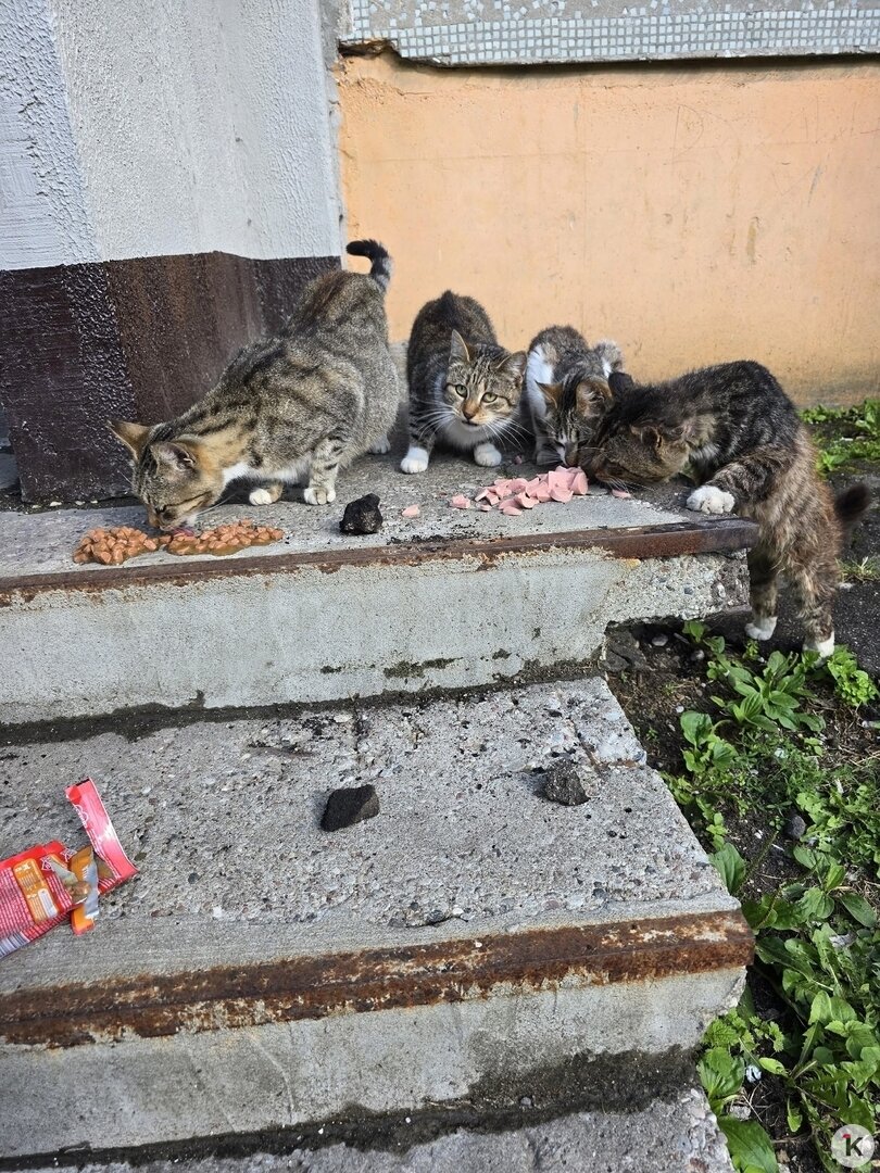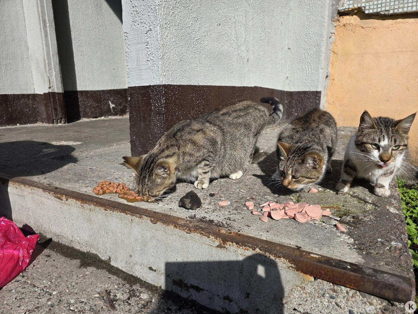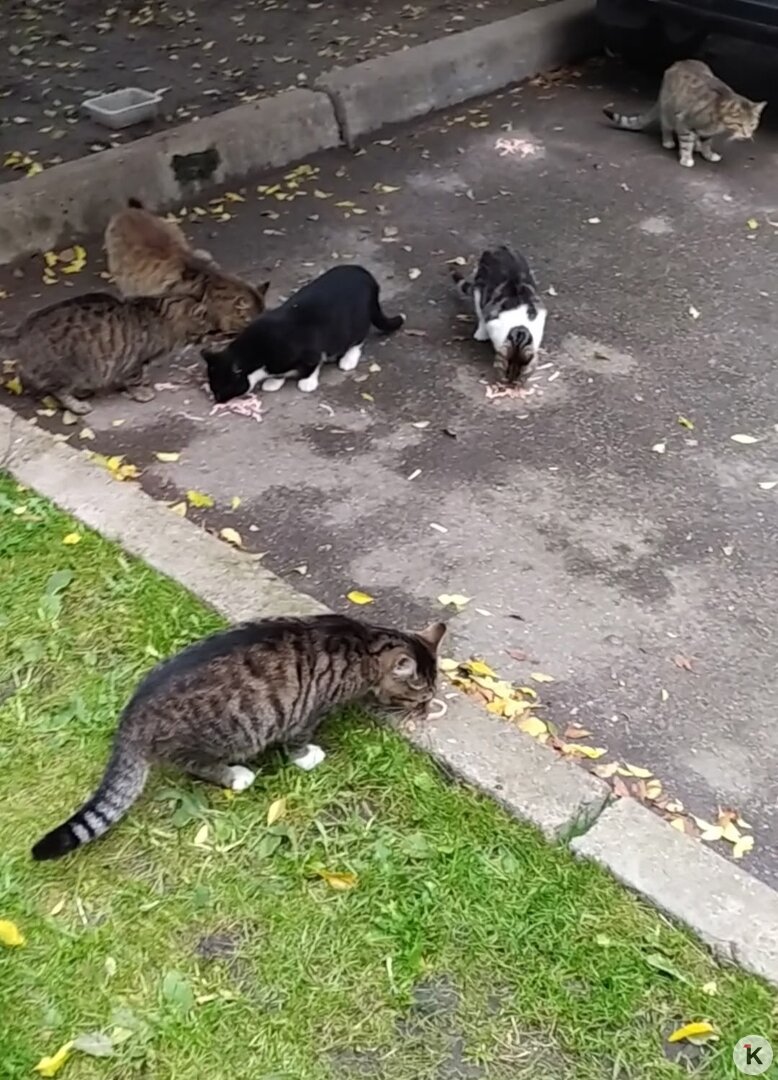 Котов кормят многие жители. Года три назад во двор выбросили кота и маленького котёнка, но взять их к себе Сергей не смог: у него уже было четверо своих.