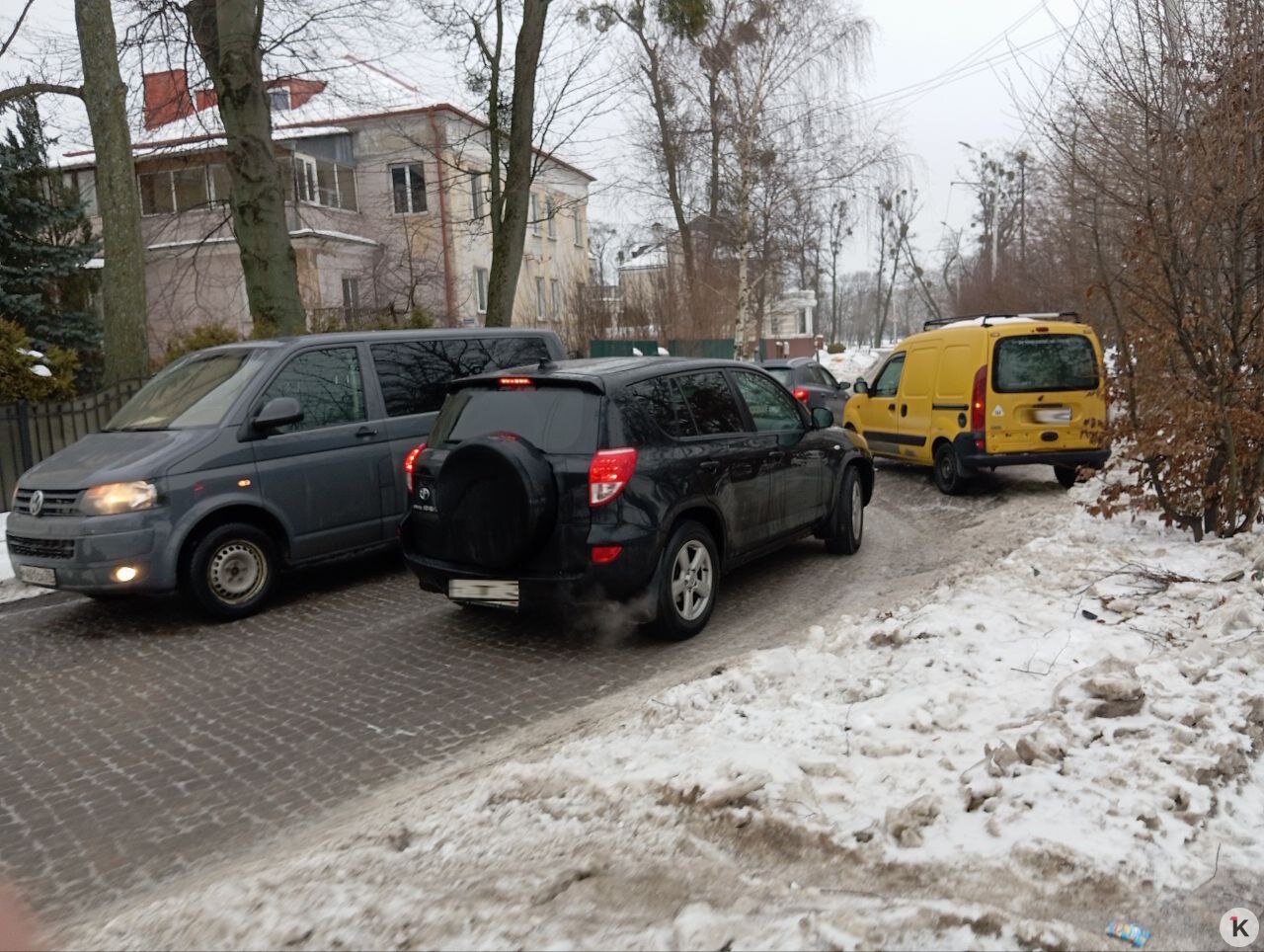 На улице Верхнеозёрной в Калининграде из-за гололёда произошло сразу несколько дорожных аварий. Об этом «Клопс» рассказали очевидцы.