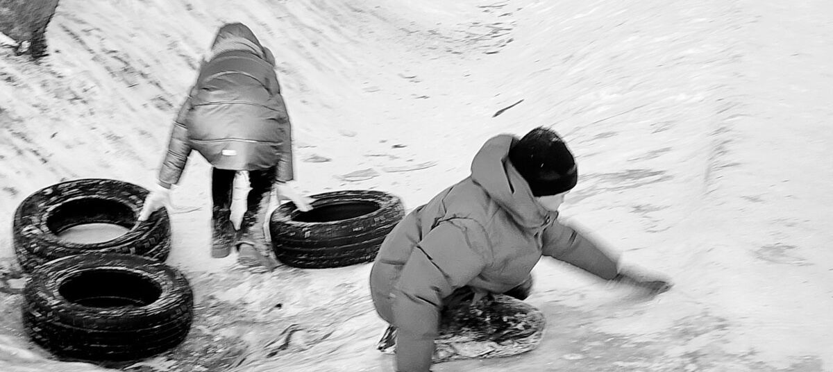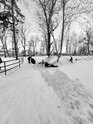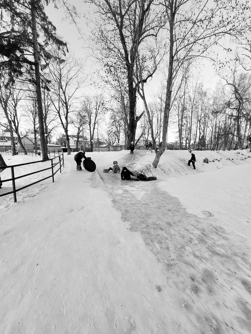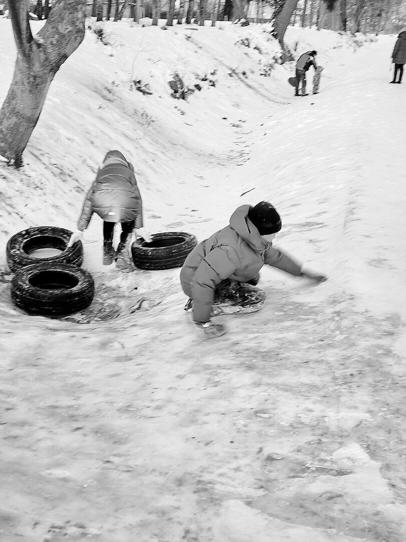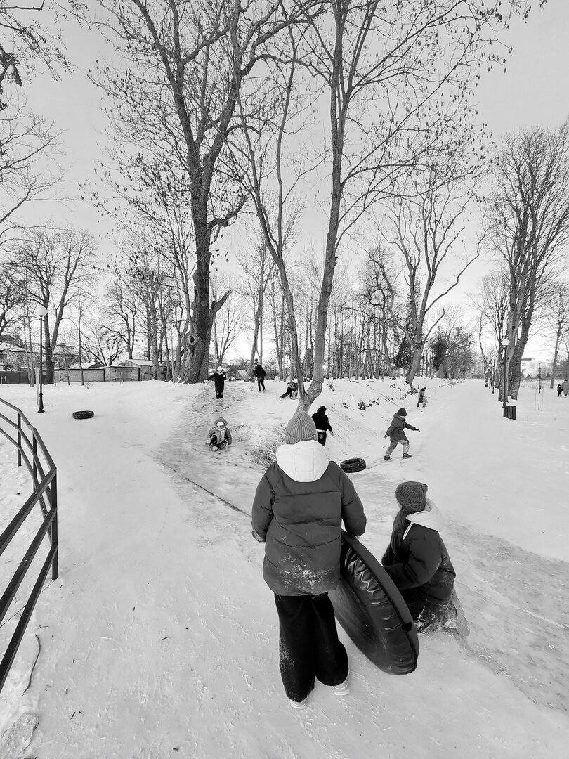 Фотограф из Полесска заснял катания на народной горке, чем вызвал ностальгические воспоминания земляков. Об этом «Клопс» рассказал сам Игорь Чугай, сделавший серию чёрно-белых кадров.