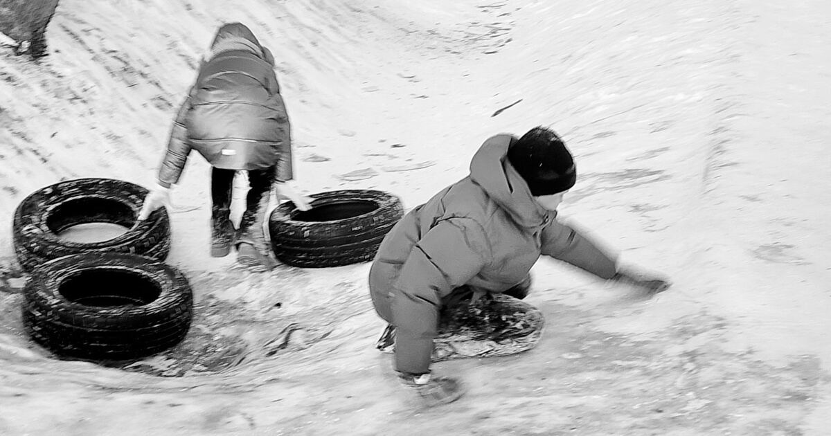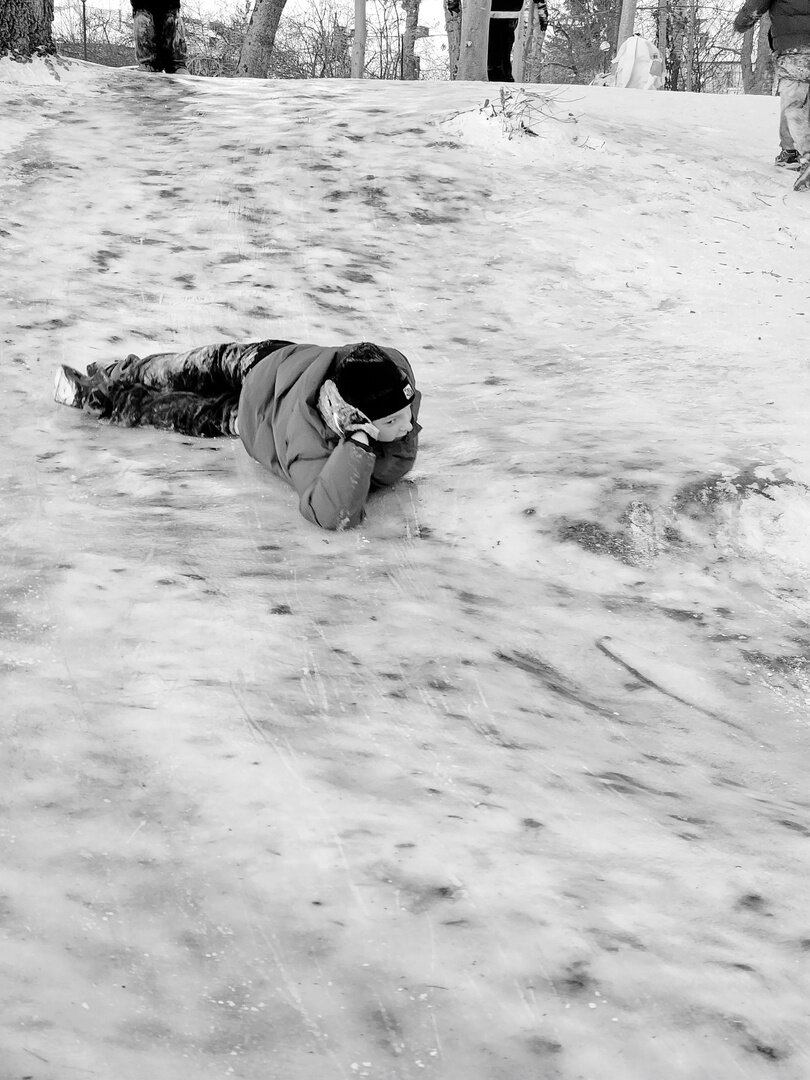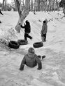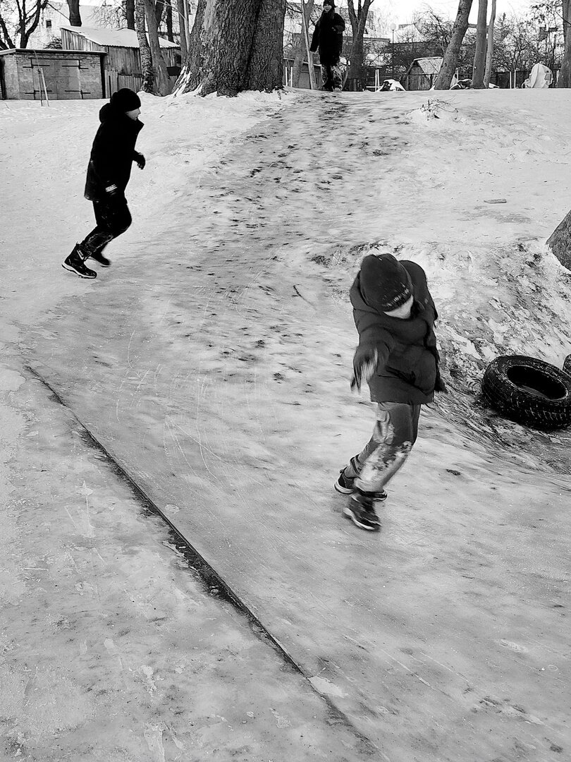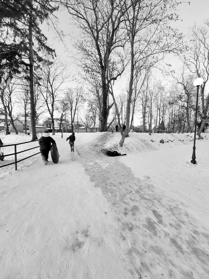 Фотограф из Полесска заснял катания на народной горке, чем вызвал ностальгические воспоминания земляков. Об этом «Клопс» рассказал сам Игорь Чугай, сделавший серию чёрно-белых кадров.