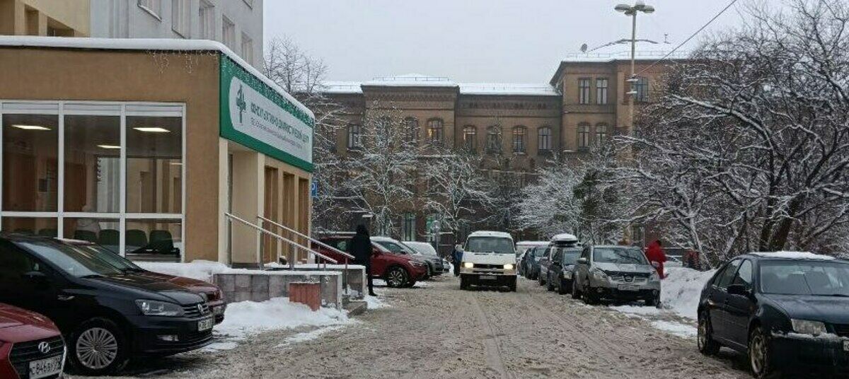 Территория вокруг гинекологического отделения на Клинической, 81, небезопасна — ледяные надолбы припорошены снегом. У здания особенно скользко: с крыш капает вода, и лёгкий мороз превращает её в каток. Дворник пытается отковырять лёд ломом, но по большей части метёт территорию веником. Корреспондент «Клопс» дважды чуть не упал здесь. Медучреждение также посещают беременные женщины, а для них растянуться на льду может означать фатальные последствия.