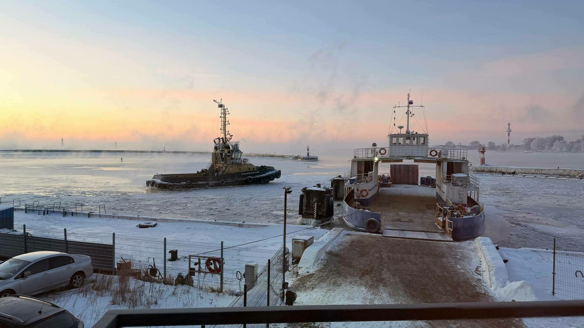 С 16 февраля из-за ухудшения ледовой обстановки паромы на Балтийской косе будут швартоваться по новой схеме.