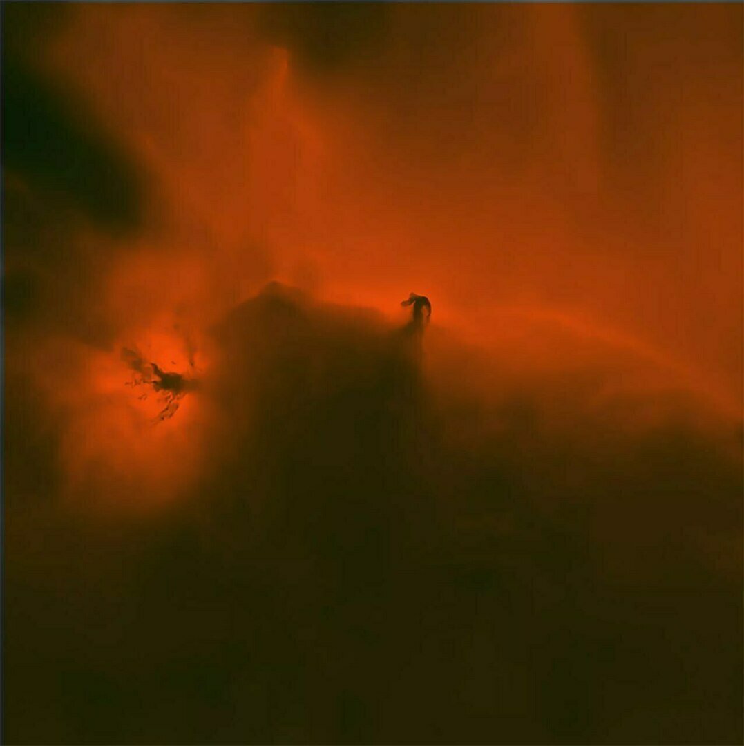 «На его фоне туманность выглядит скромно, но не стоит обманываться — её поперечник составляет около трёх с половиной световых лет, то есть сопоставим с расстоянием от Солнца до Альфы Центавра. Масса туманности тоже впечатляет — по разным оценкам она может достигать 250 масс Солнца! <...> Прямо сейчас за тёмной завесой этой туманности активно протекают процессы звездообразования», — рассказал руководитель астрономического сообщества вуза Алексей Байгашов.