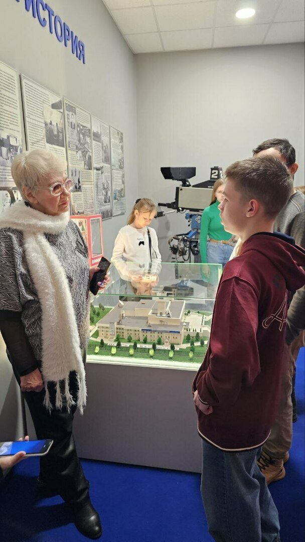 Юные исследователи увидели, как создаются новости, и начали знакомство с музея первого регионального телевидения. Экспонаты — печатные машинки, сценические костюмы, звукорежиссёрские пульты и чёрно-белые видеокамеры — вызвали у ребят живой интерес. Школьникам рассказали об этапах телевизионного производства и показали современные павильоны.