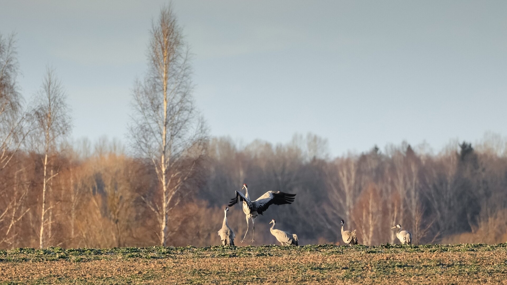 Год назад в это же время фотограф немного грустил о том, что на востоке области почти не было снега — зато запечатлел брачные танцы журавлей. Сейчас же о весне напоминают только эти кадры.