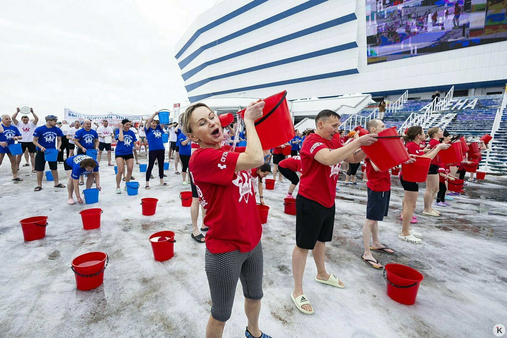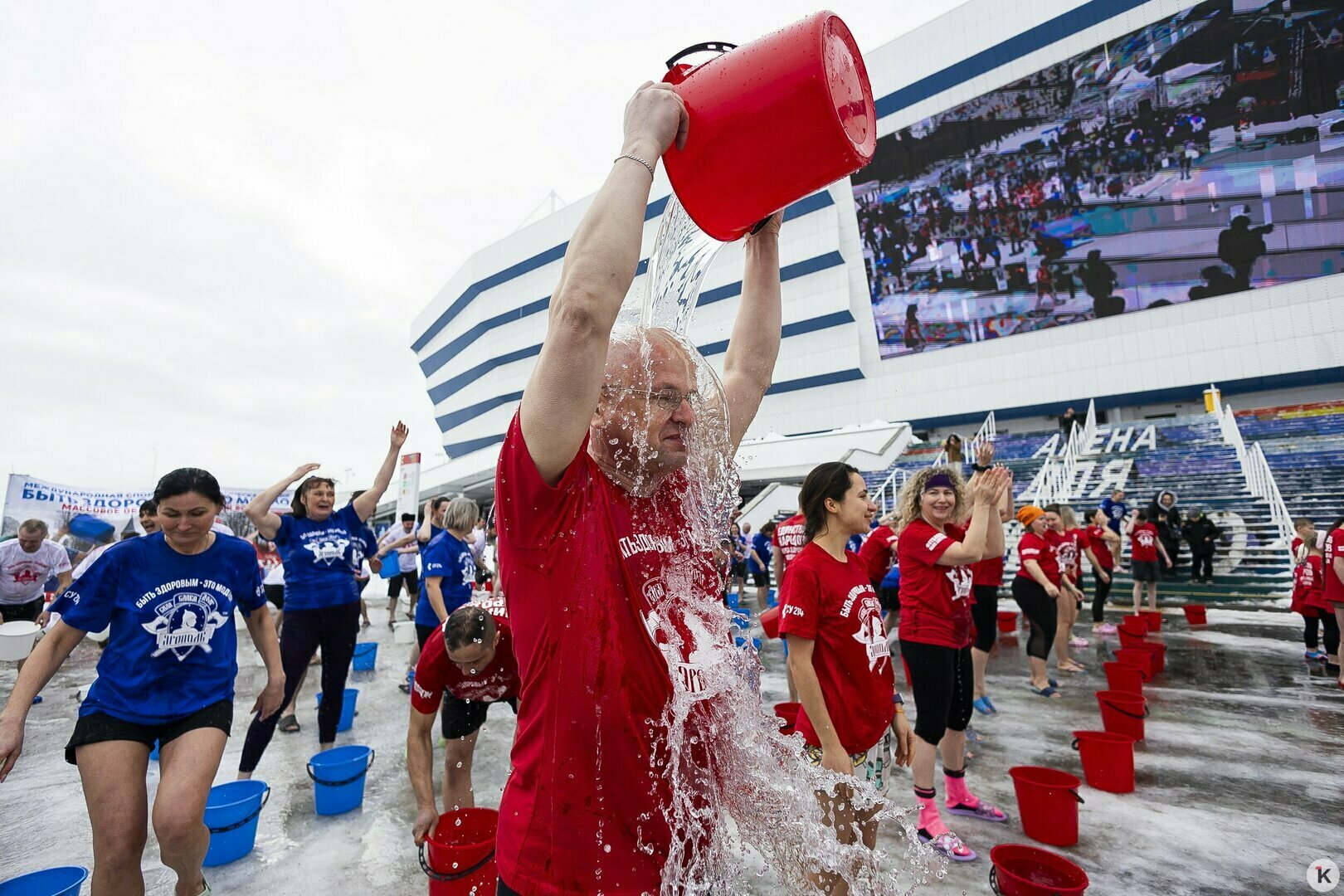 Калининград в четвёртый раз стал частью международной спортивно-патриотической акции «Быть здоровым — это модно»: в один день холодной водой обливаются люди в десятках городов России и за её пределами. В этом году мероприятие прошло у «Ростех Арены» — несмотря на снег и ветер, горожане вышли в майках и шортах. За их стойкостью духа наблюдал фотокорреспондент «Клопс».