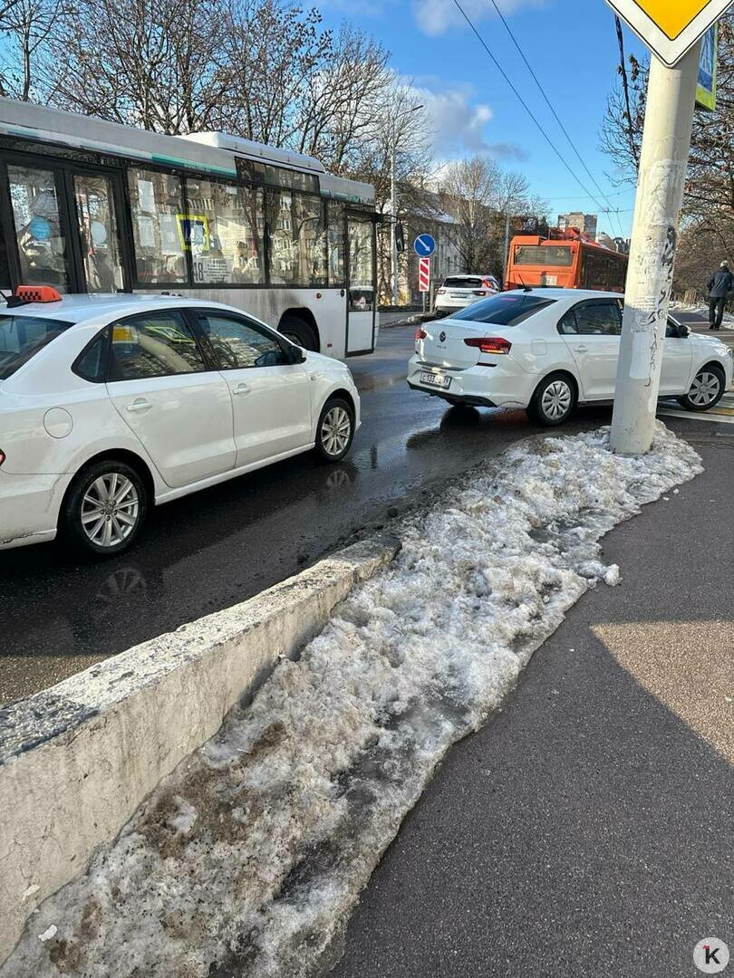 На Горького в Калининграде из-за ДТП с легковушкой и пассажирским рейсовым автобусом образовалась пробка. Авария произошла во вторник, 24 февраля, сообщают «Клопс» очевидцы.