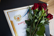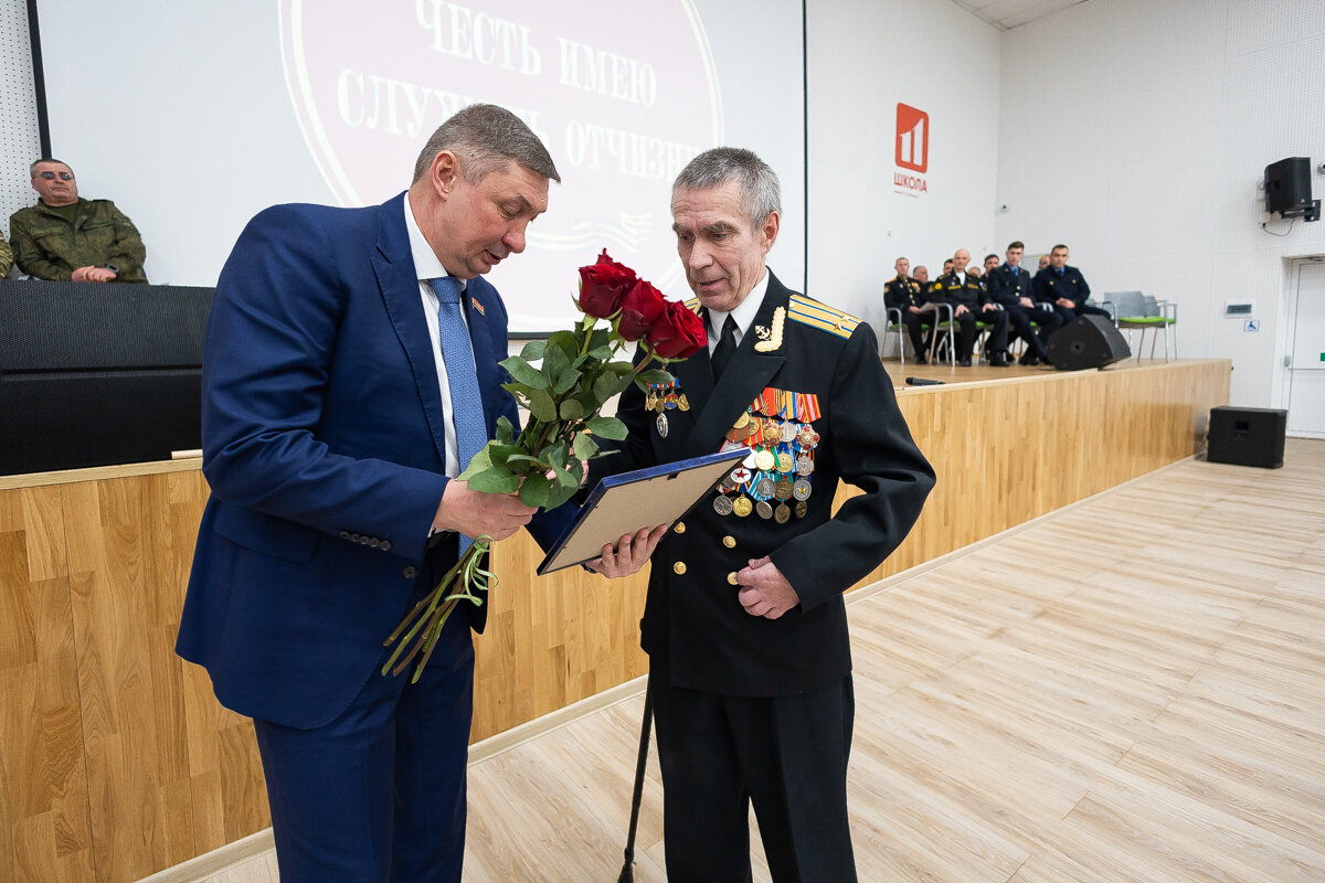 Депутат Заксобрания Евгений Верхолаз вручил цветы и благодарственные письма тем, кто проводит в школе патриотическую работу с молодёжью, помогает бойцам СВО одержать победу.