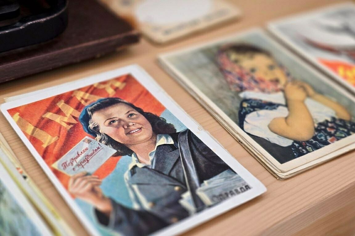 «Это открытки, которые его отец и тесть привозили с войны. Есть подписанные, есть чистые. 1943 год, 1946 год. Они десятилетиями хранились дома», — рассказывает Мария. Такие открытки покупают как памятные предметы и как часть личной истории города.