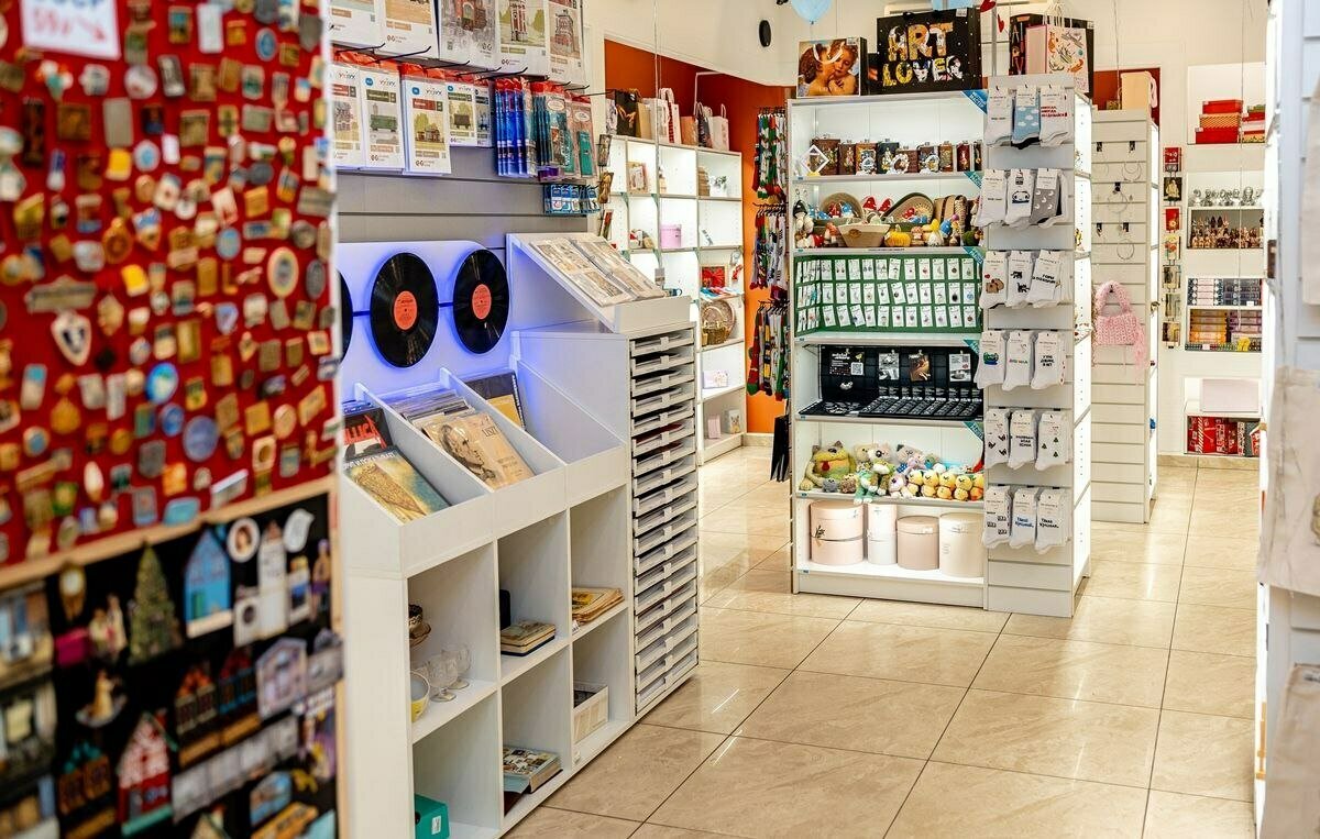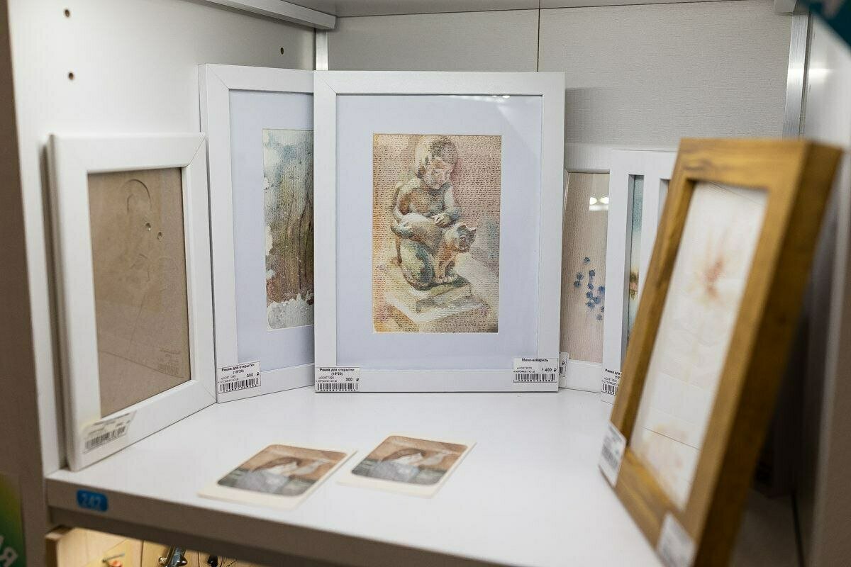 Представлены акварели профессионального художника Ольги Юшко, которая расписывает храмы и архитектурные объекты, а в свободное время пишет небольшие работы для магазина. Есть молодой местный бренд «МОМО» со свечами из премиального соевого воска. В разделе «умной бумаги» — модели, которые собираются без клея и ножниц, включая ретросерию с архитектурными сюжетами.