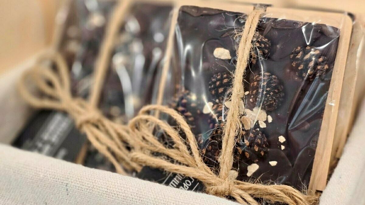 «Шашлык из шишки — да, он съедобный. Ещё очень вкусный горький шоколад с сосновой шишкой. Для любителей горького шоколада это прямо находка», — говорит она.