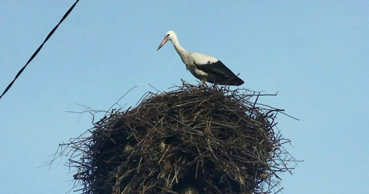 Аист пока гнездится в одиночестве и ждёт вторую половинку.
