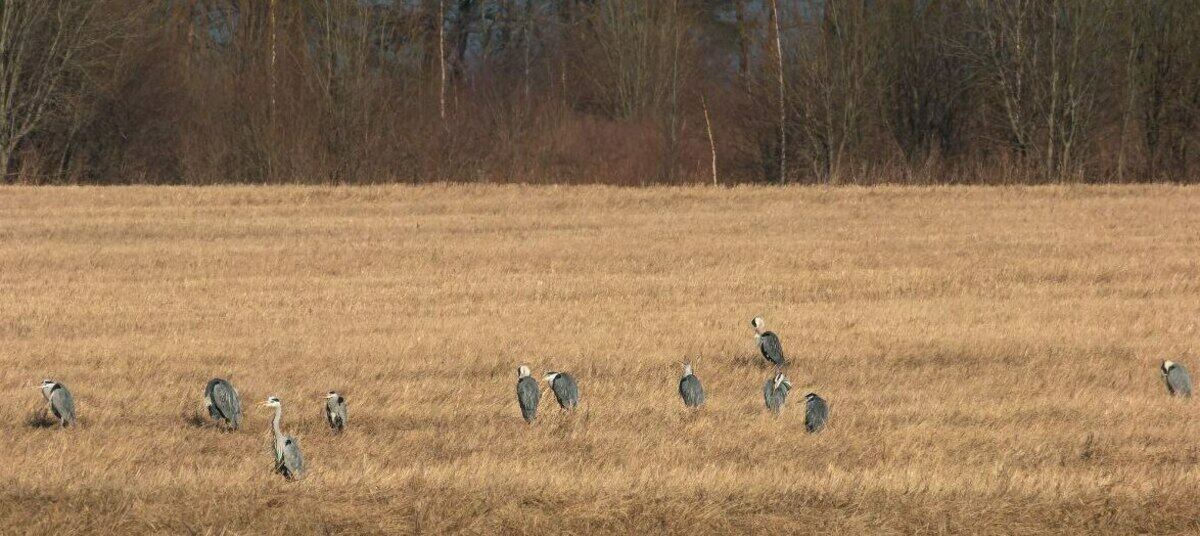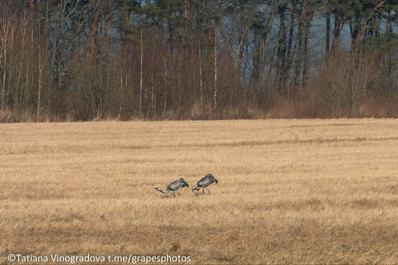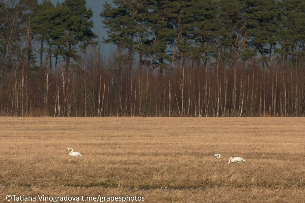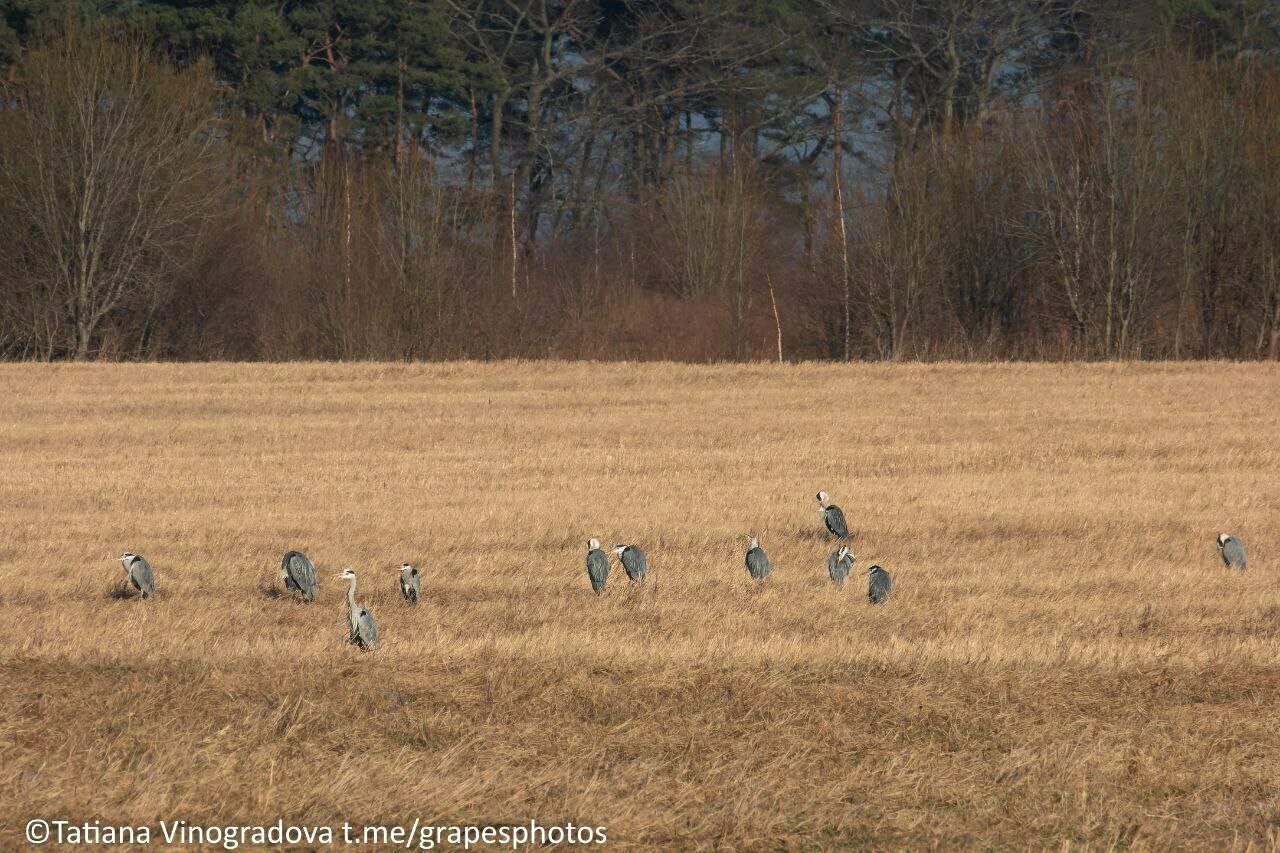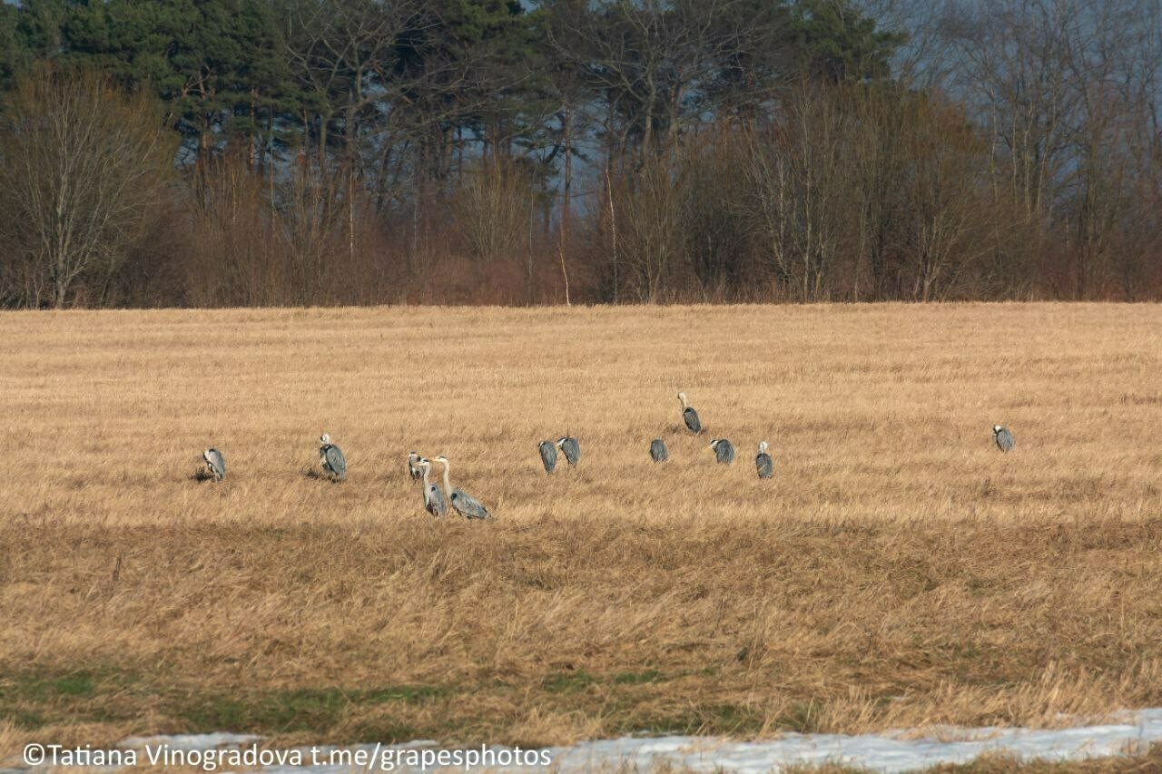 Калининградский фотограф Татьяна Виноградова запечатлела сразу три стаи птиц разных видов на одном поле. Бок о бок гуляли в траве цапли, журавли и лебеди-кликуны, рассказала «Клопс» автор снимков.