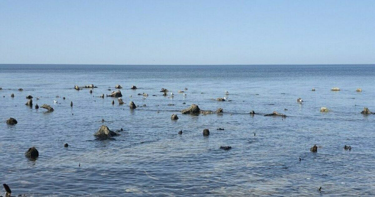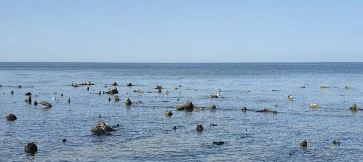 В обычное время пни в море почти не видны — их прячут водоросли. Сейчас местные и туристы фотографируют коряги и стараются прикоснуться к ним, пока дно снова не ушло под воду.