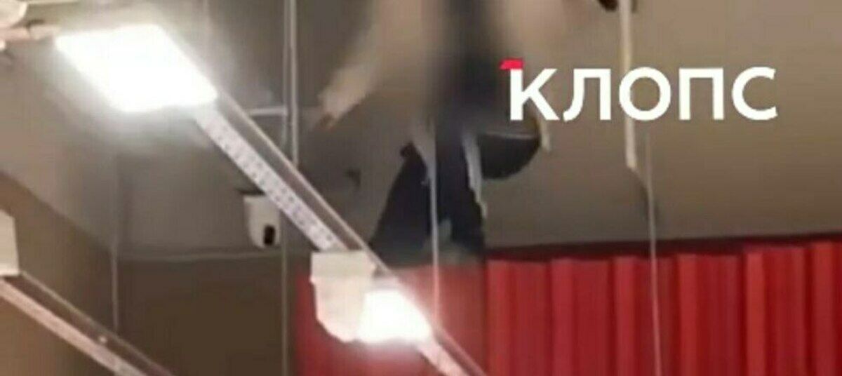 В калининградском магазине пьяный мужчина в спортивных штанах и белой ветровке устроил акробатическое шоу под потолком. Об этом «Клопс» рассказал очевидец дикой выходки, снявший её на видео.