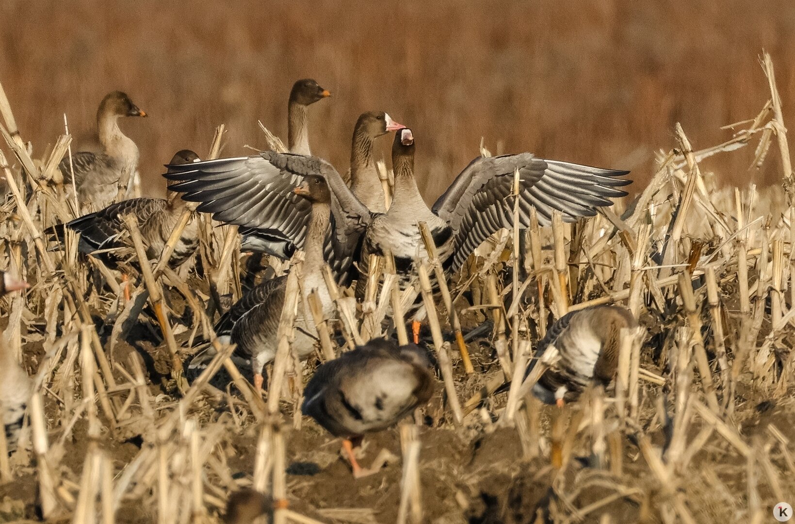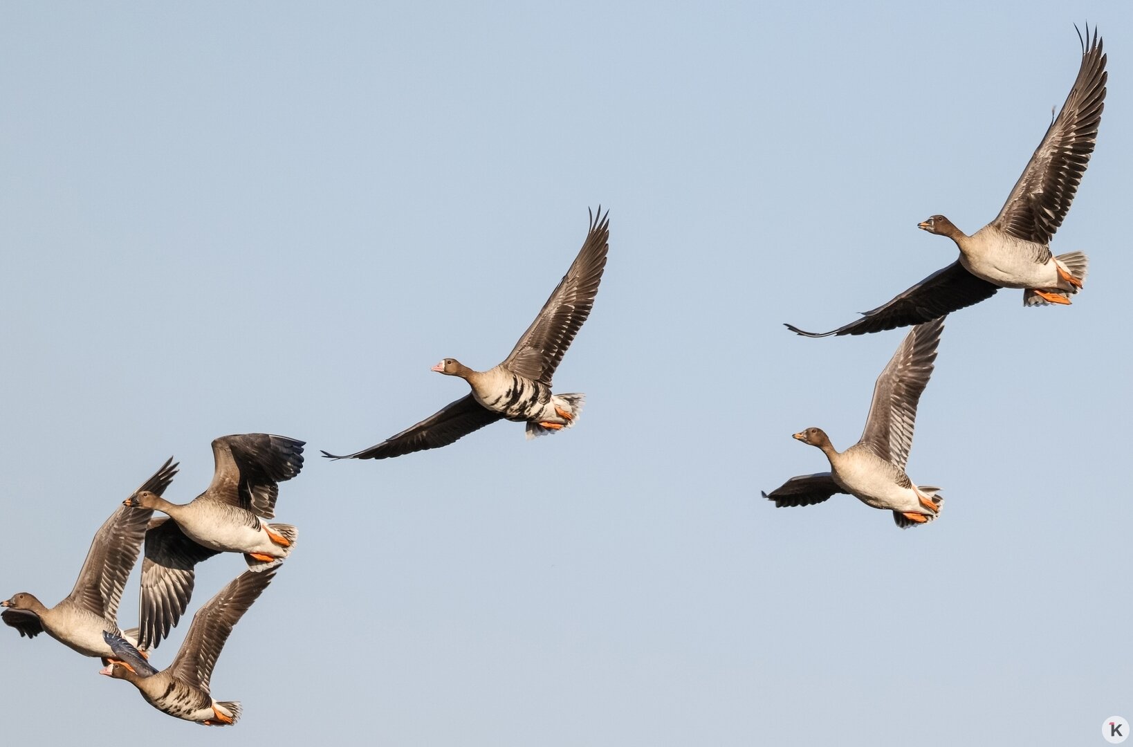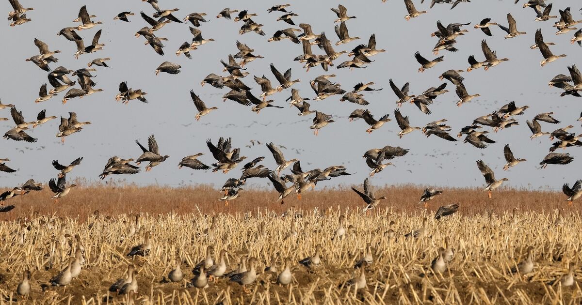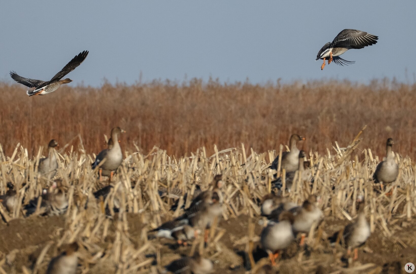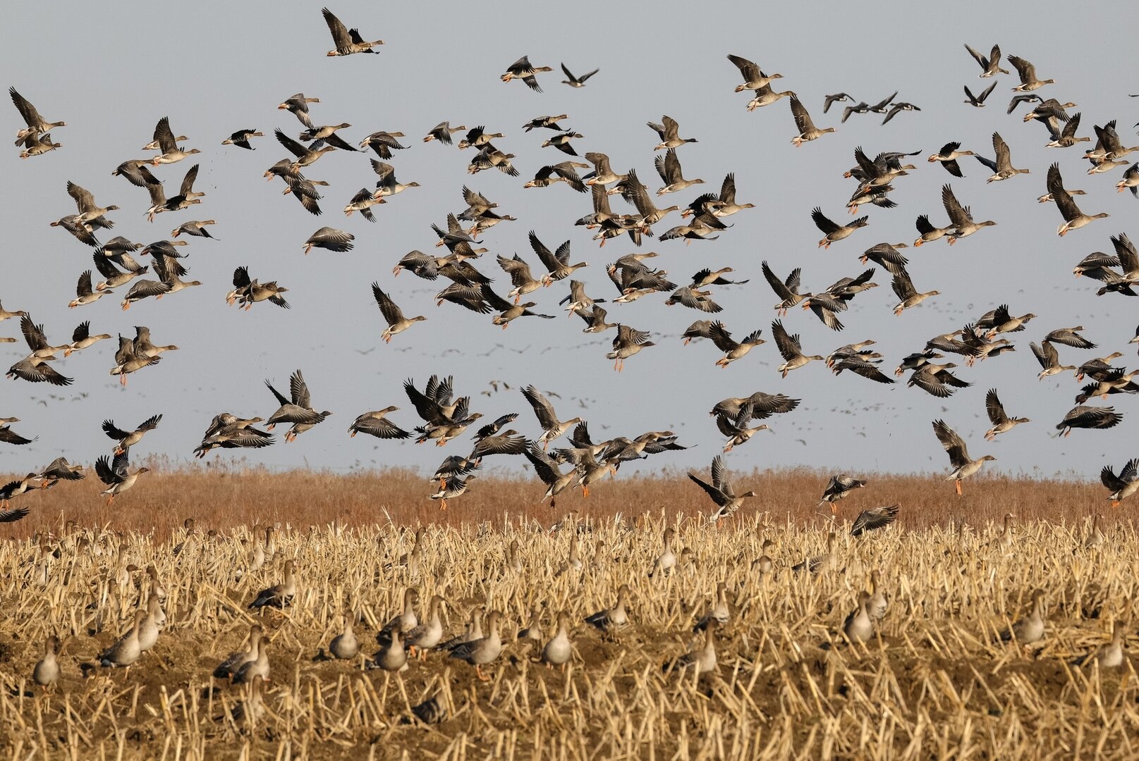 Калининградский орнитолог Геннадий Гришанов по фото определил вид пернатых: в стае заметны гуменники и белолобые гуси. Эти перелётные птицы зимуют в западной Европе, в основном, в Германии, а весной мигрируют, чередуя перелёты с миграционными остановками. Именно такую они и сделали сейчас в Калининградской области.