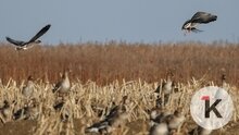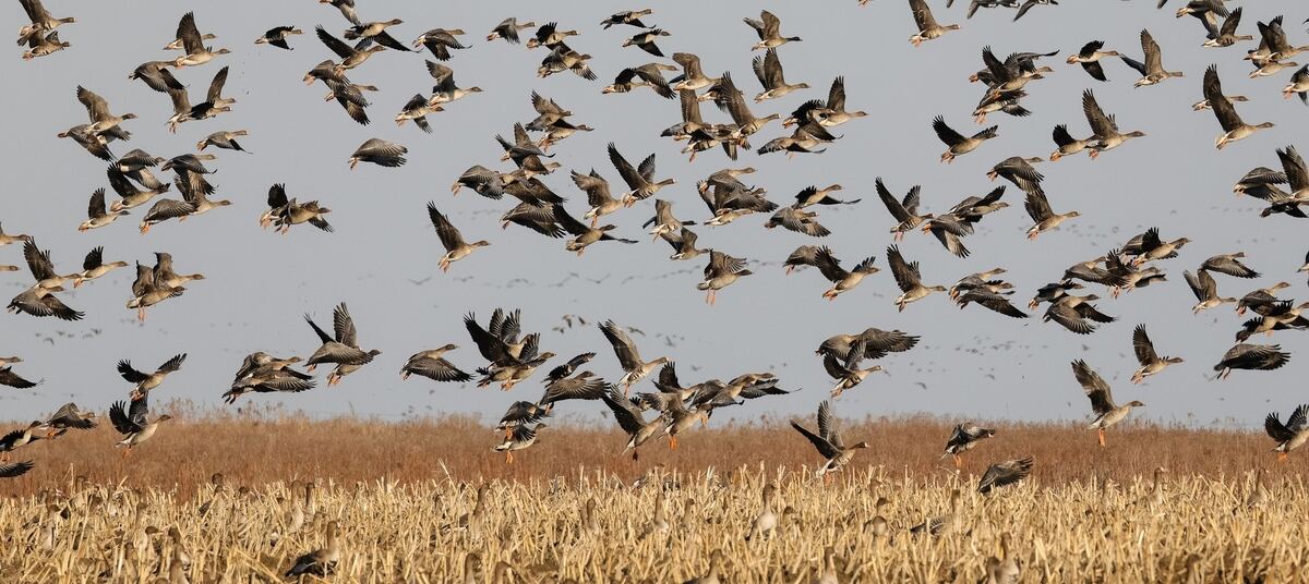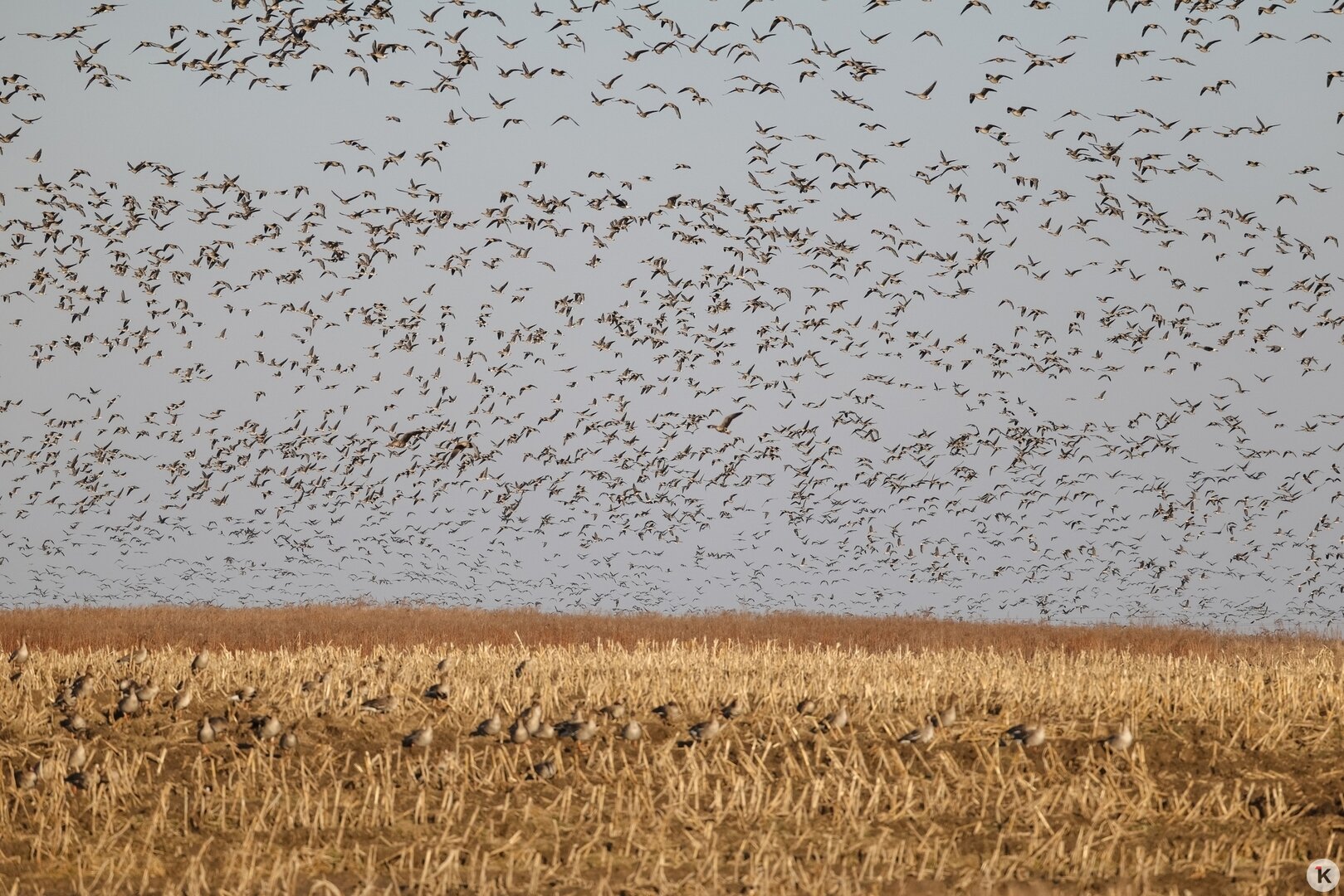 А вот миграция белолобых и гуменников, по словам зоолога, в этом году действительно отличается формированием очень крупных остановок. Численность птиц достигает пяти и более тысяч особей. Такую внезапную массовость «мигрантов» определяет целый комплекс причин, связанных с ходом погодно-климатических условий и формированием миграционных русел.
