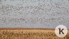 «Небо в считаные минуты становится чёрным, тысячи и тысячи птиц заполняют его до самого горизонта, — рассказывает Юрий. — Прямо нашествие! От их гомона аж уши закладывает. Зрелище впечатляющее. Издали как будто саранча, птицы растягиваются на три-четыре километра. Это невозможно уместить ни в глаза, ни в объектив!»