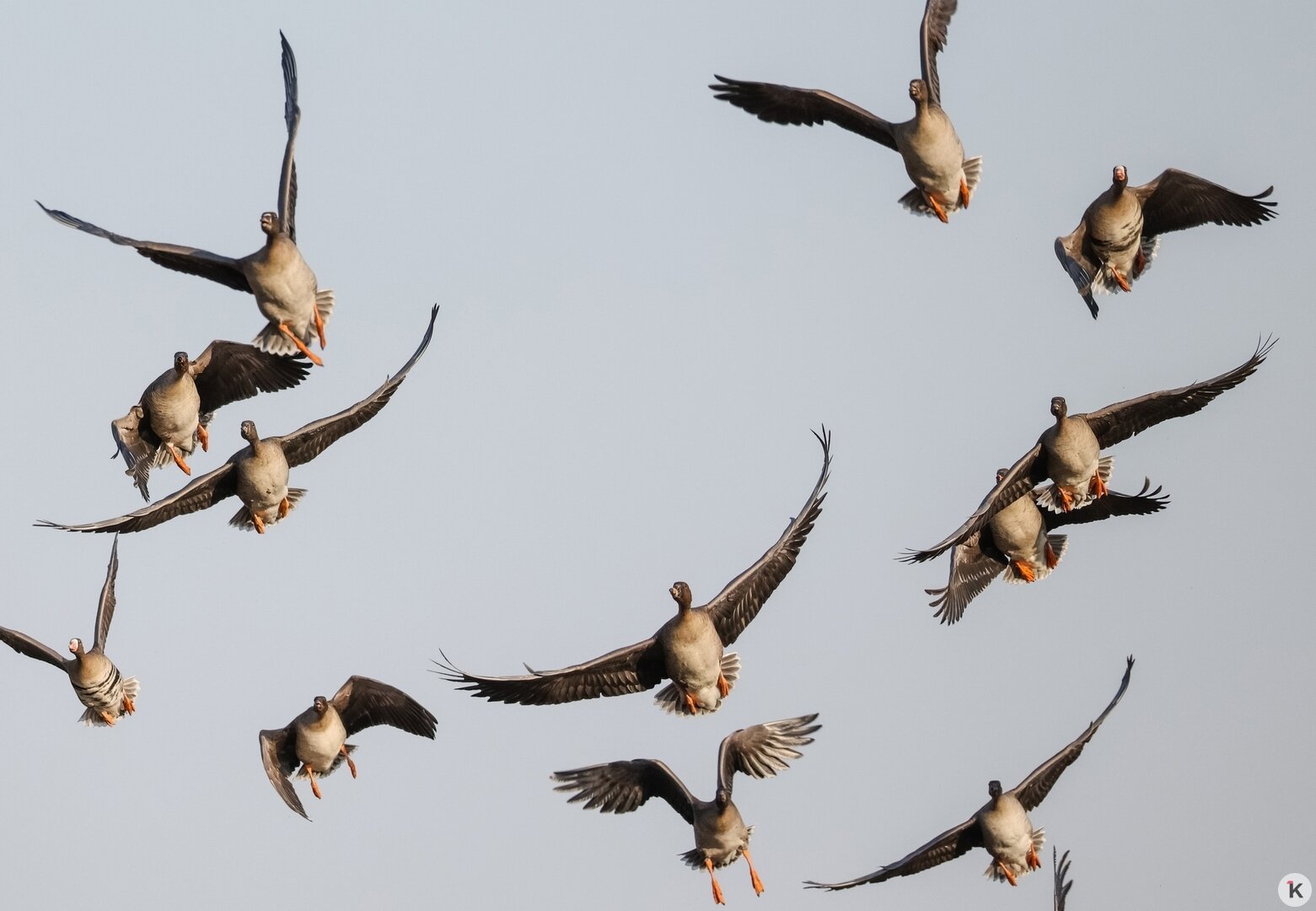 Через Калининградскую область мигрируют тысячи перелётных гусей. Две огромные стаи попали в объектив фотографа из Черняховска в течение пяти дней, рассказал «Клопс» сам Юрий Таркин во вторник, 17 марта.